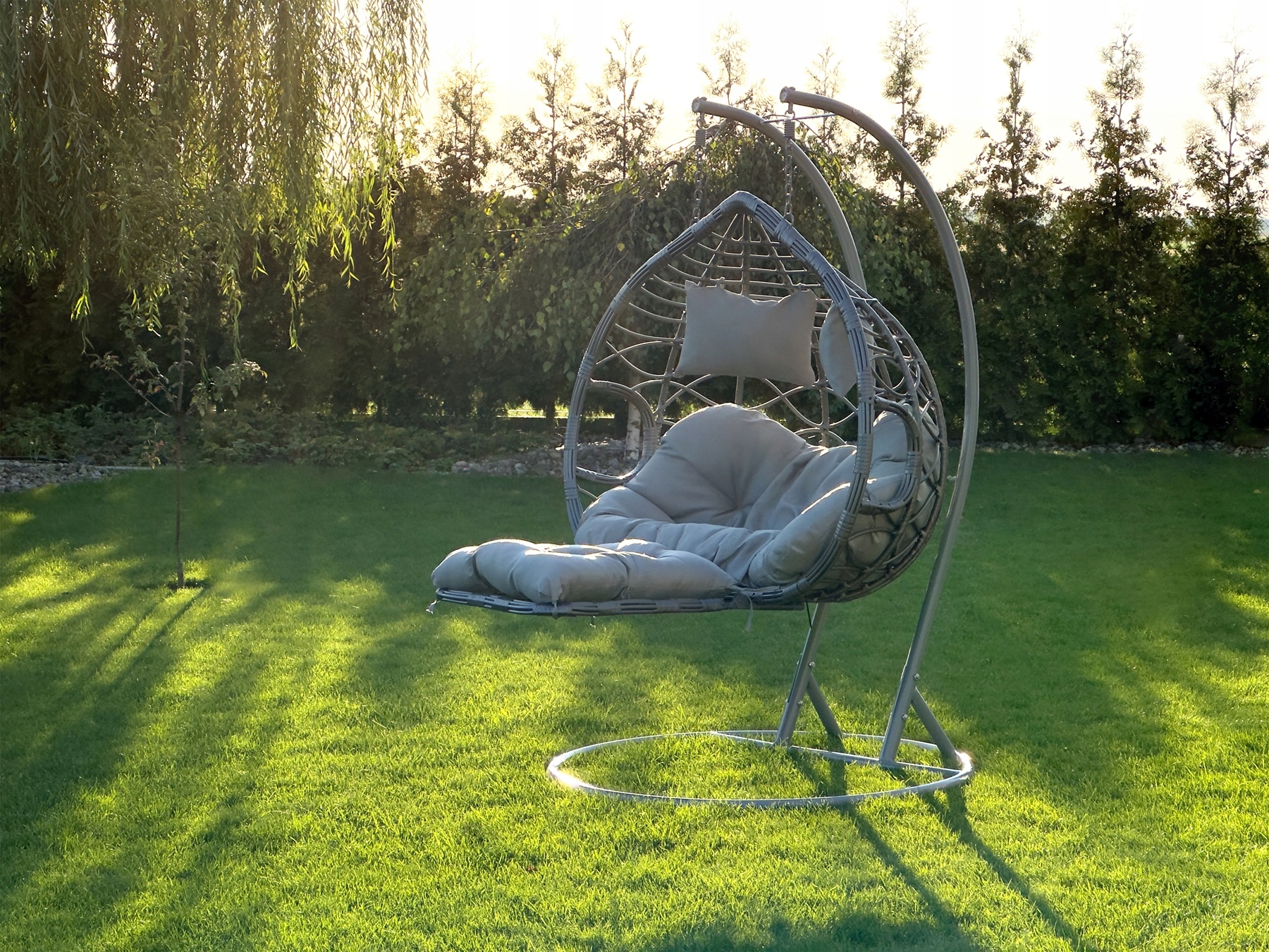 КРІСЛО-ГАМАК ПІДВІСНЕ З ПІДНІЖКОЮ, СІРИЙ, 2-місний