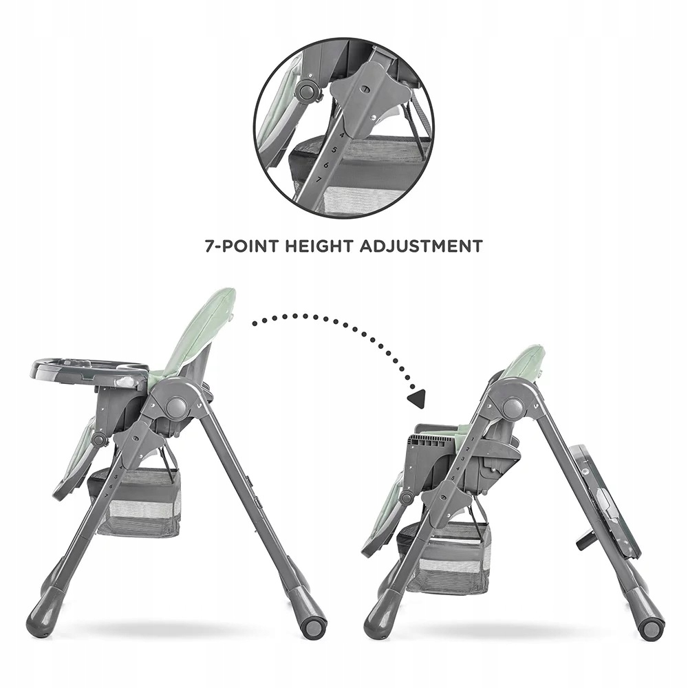 Зручне, розкладне крісло з регульованою спинкою дозволяє малюкам користуватися стільчиком, як тільки вони навчаться сидіти. М'який чохол з екошкіри забезпечує комфорт і легкість чищення, а регульована підніжка - комфорт під час їжі.