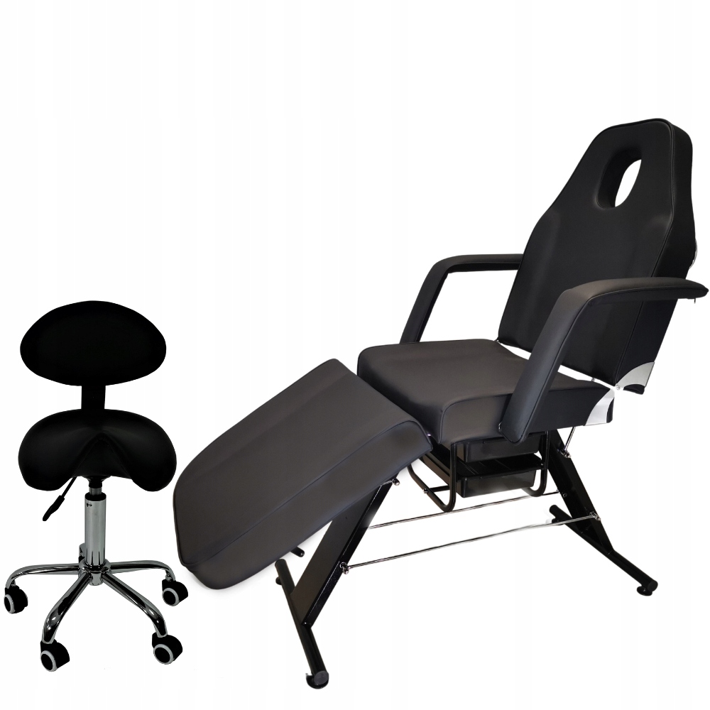 КРІСЛО КОСМЕТИЧНЕ З КЮВЕТАМИ ЧОРНИЙ ТАБУРЕТ СІДЛО ЗІ СПИНКОЮ ЧОРНИЙ