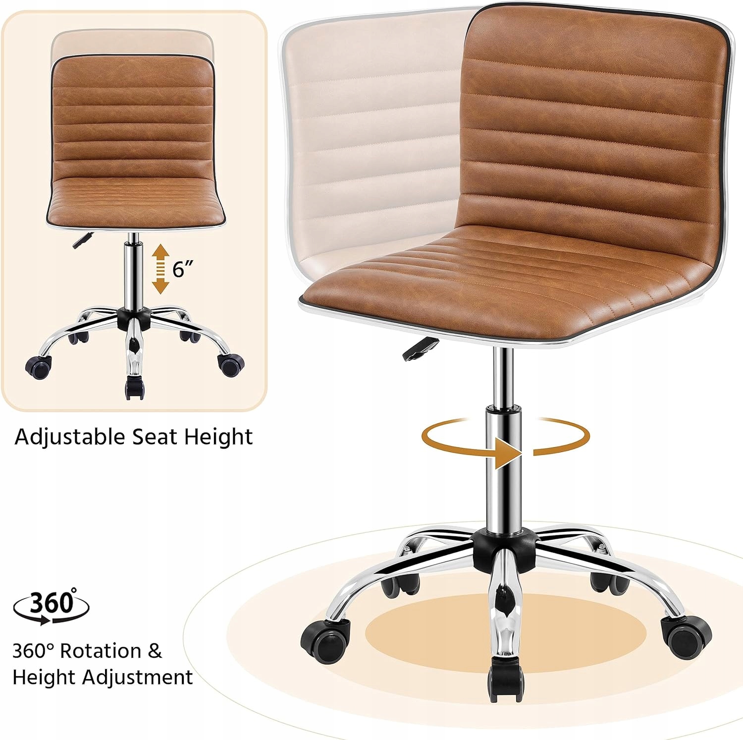 Офісне крісло без руки Yeheetech з низькою спиною, від шкіри PU, ергономічного обертового комп'ютерного крісла з колами для офісу, будинку