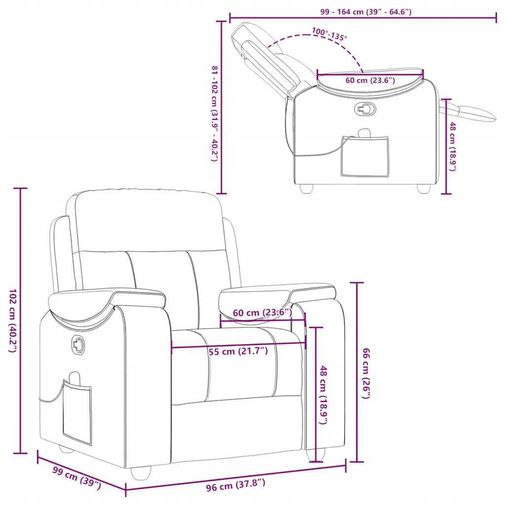 - Розміри в положенні лежачи: 96 x 164 x 81 см (Ш x Г x В)