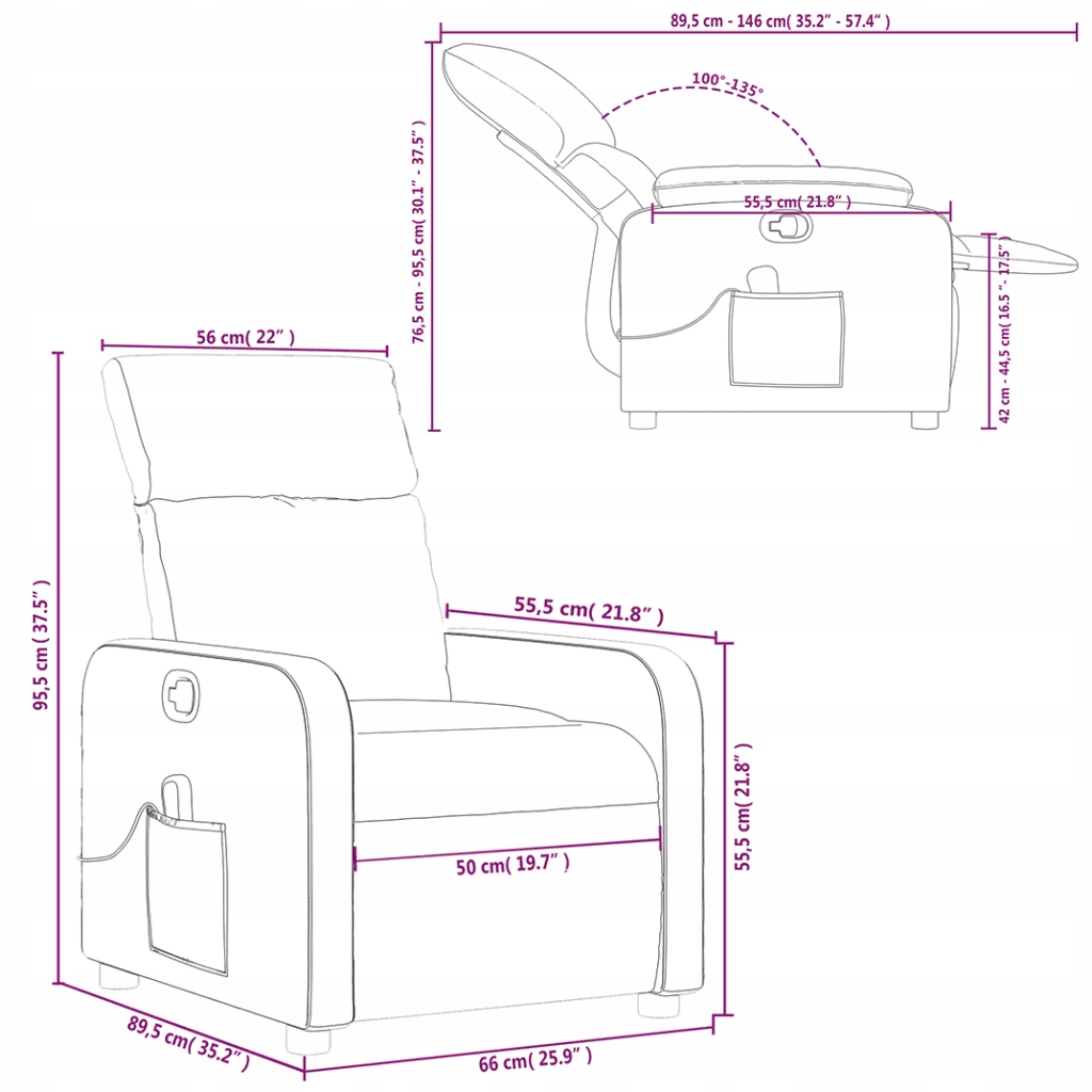 - Розміри в положенні лежачи: 66 x 146 x 76,5 см (Ш x Г x В)