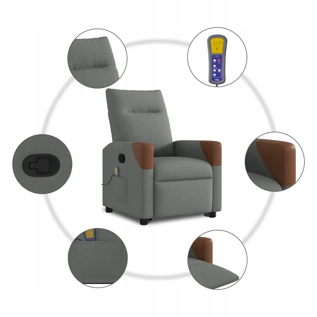 Підйомне масажне крісло, розкладне, темно-сіре, тканина