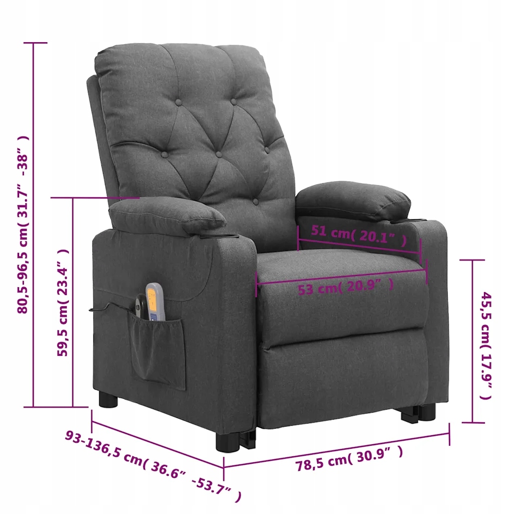 - Розміри в лежачому стані положення: 78,5 x 136,5 x 80,5 см (Ш x Г x В)