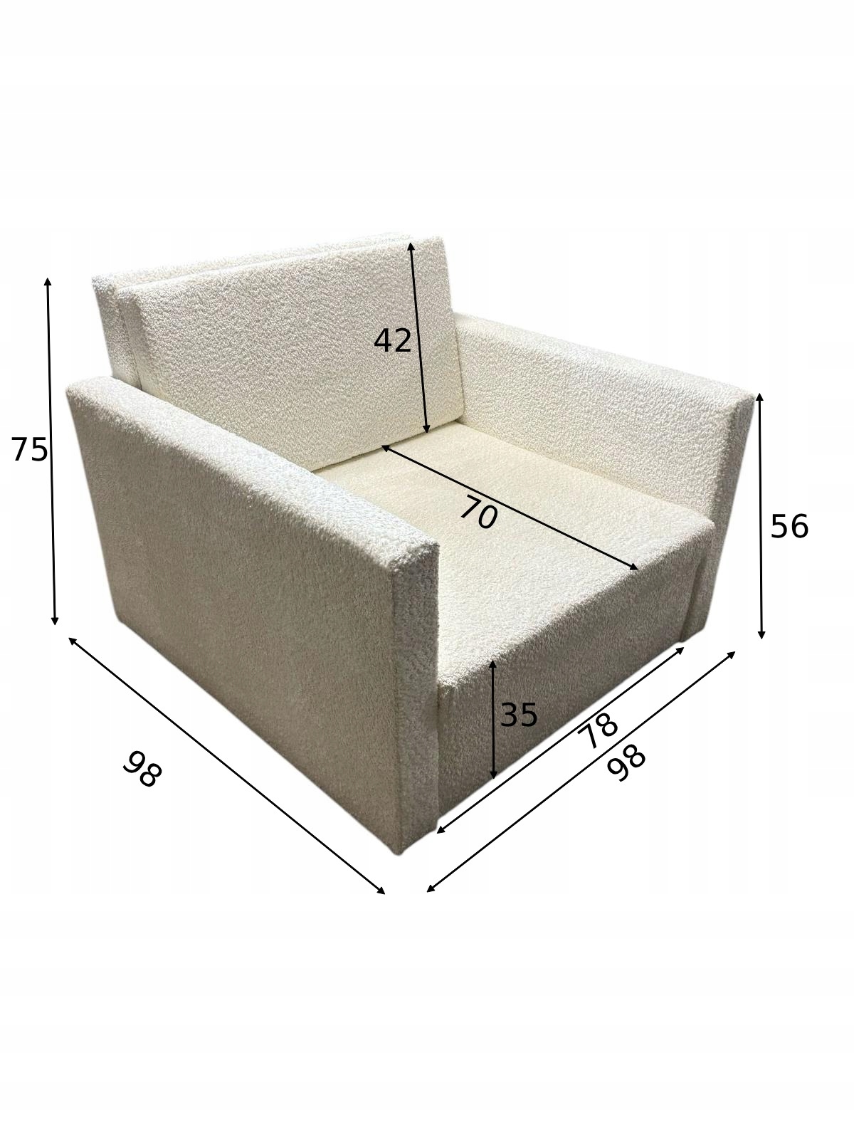 Bear Fold -out Ercchair -це ідеальне рішення для людей, які шукають функціональні та зручні меблі для дитячої кімнати, гостинного чи невеликого місця. Завдяки можливість розповсюдження на дві довжини ви можете адаптувати його до своїх потреб, а компактний дизайн змушує його зайняти мало місця.