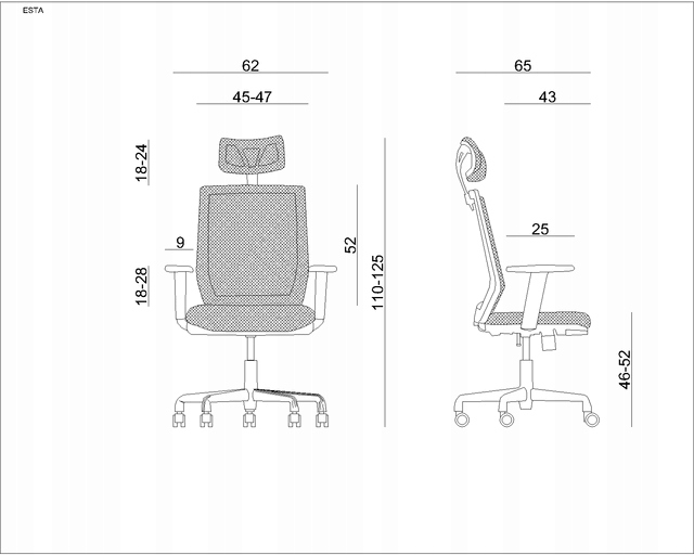 ЕРГОНОМІЧНЕ ОФІСНЕ КРІСЛО ESTA ERGONOMIC BLACK РЕГУЛЬОВАНЕ ОБРАТНЕ З КОЛЕСАМИ