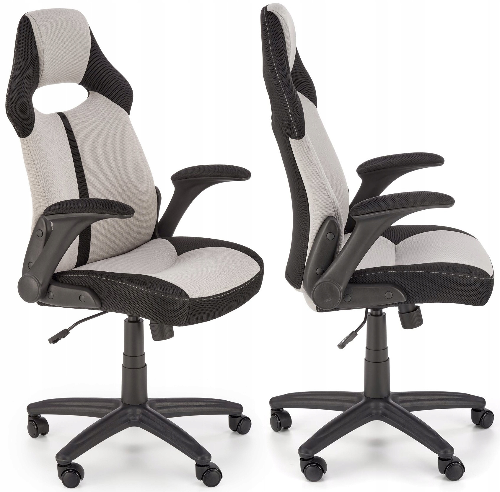 Офісне крісло поворотне з контурною спинкою та відкидними підлокітниками. Підлокітники і бігова основа виготовлені з міцного пластику. Підлокітники мають м'які оббиті накладки.