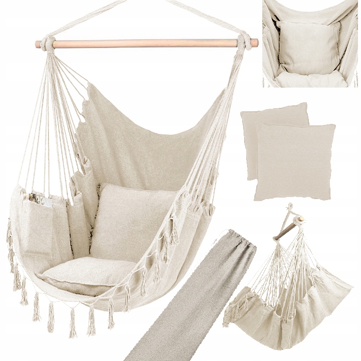 Сучасне, красиве та зручне підвісне крісло BOHO забезпечить незабутній відпочинок. Не потребує багато місця, чудово працює як підвісне крісло вдома, додаючи шарму інтер’єру, а також на відкритому повітрі в саду, на терасі чи балконі, а також під час подорожей.