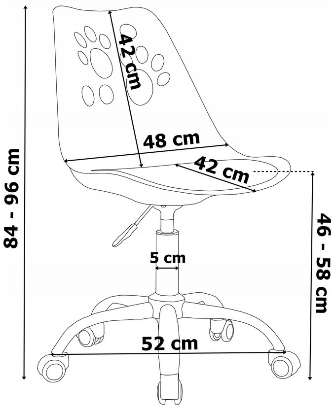 Дитяче крісло TULIP від TRADEN це міцне офісне крісло з плавним регулюванням висоти. Виготовлений з міцного матеріалу PP, еко-шкіри та каркасу з хромуванням. Офісне крісло TULIP характеризується профільованим ергономічним сидінням з м'якою зручною подушкою з екошкіри. Спинка прикрашена цікавим візерунком котячих лапок. Кріслозручне та комфортнеу використанні. Він стабільний, повністю поворотний і безшумний завдяки гумовим колесам. Цікавий дизайн і пастельні кольори чудово впишуться в будь-яку дитячу кімнату.