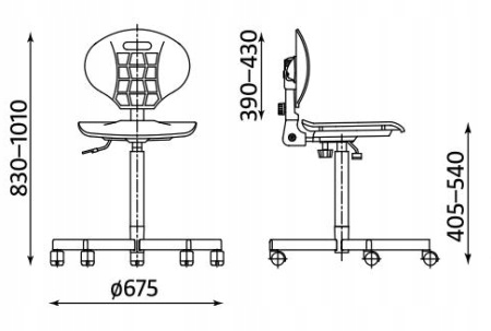 Дуже популярне та цінне за співвідношенням якість/ціна крісло від відомого польського виробника Nowy Styl. Висока якість. Металева основа, пофарбована порошковою фарбою чорного кольору. Сидіння та спинка з поліуретану - протиковзка. Спинка має отвір, що полегшує пересування крісла. Висота сидіння і спинки регулюється - діапазон регулювання видно знизу. Регульована глибина сидіння.
