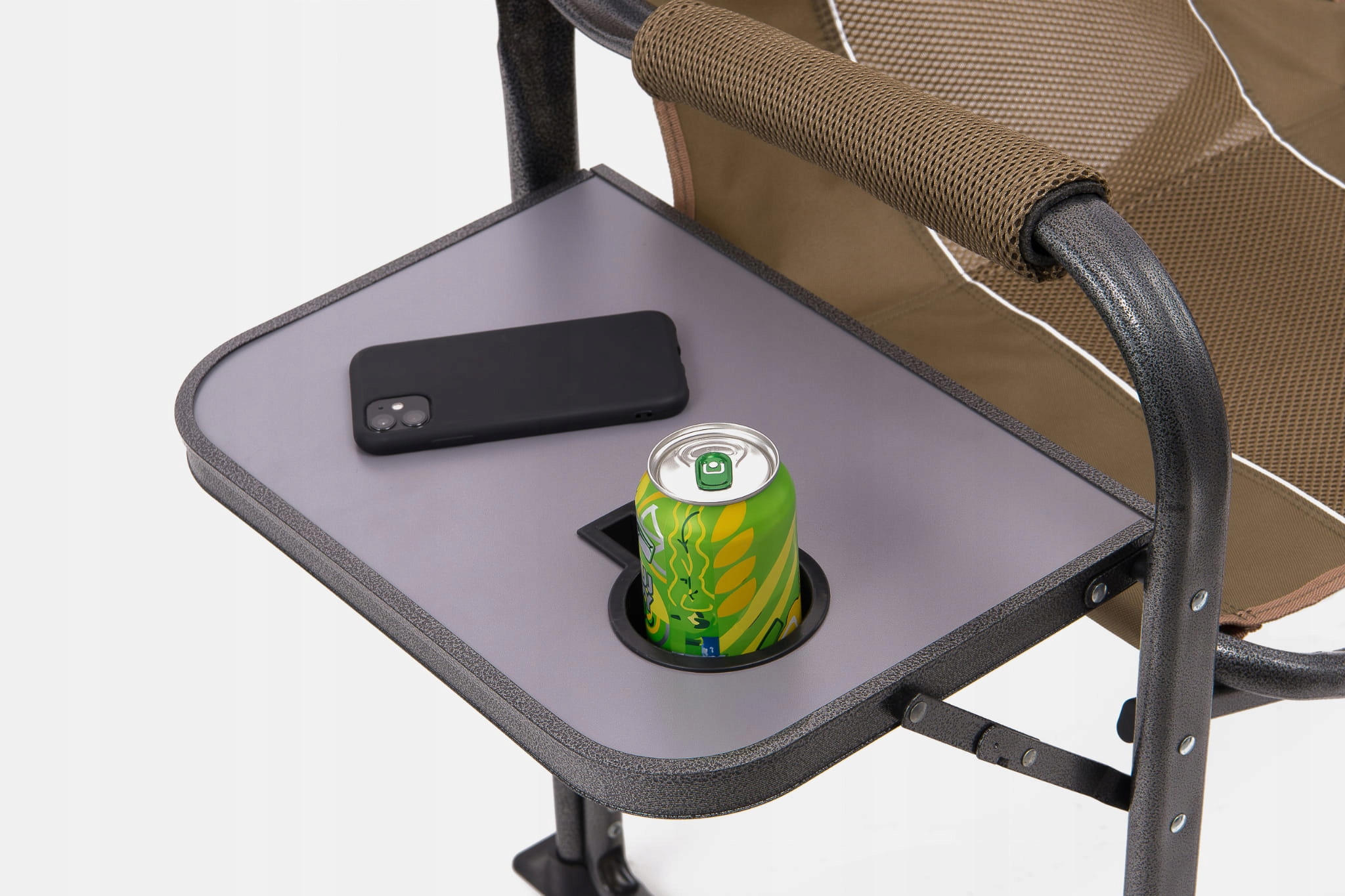 Складне кемпінгове крісло зі столиком для напоїв — ідеальний вибір для людей, які цінують комфорт під час проведення часу на природі. Це чудовий вибір для саду, кемпінгу, відпочинку, парку або риболовлі. Крісло характеризується міцною обробкою, що гарантує відмінну стійкість і максимальний комфорт.