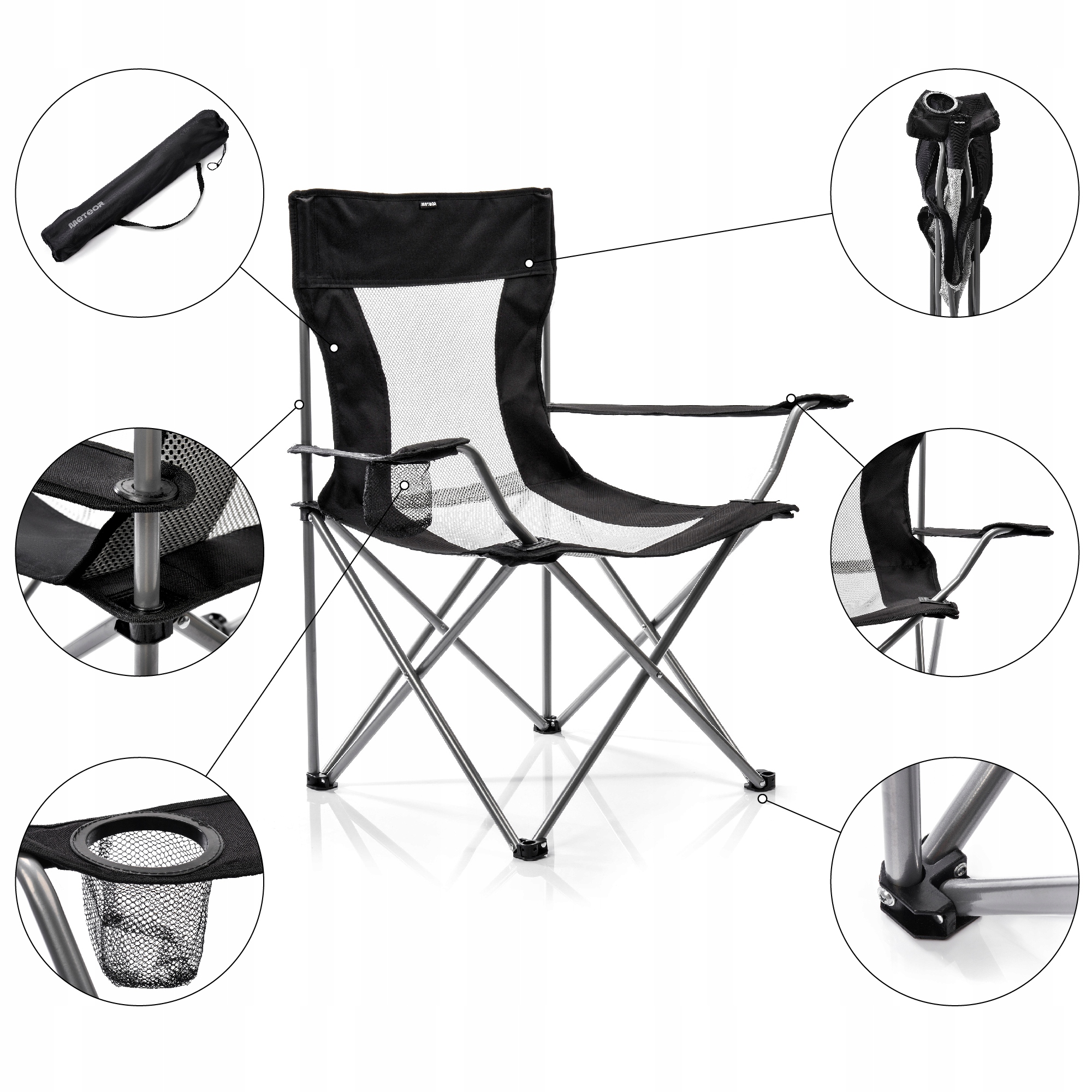 Розроблений для довговічності та міцності, стілець Meteor Tripper поєднує в собі сидіння з водонепроникного матеріалу 600D. поліестер і сітки, а також сталевий каркас з порошковим покриттям. Широкі ніжки забезпечують додаткову стійкість, а легкість складання та розкладання, а також практична сумка для зберігання крісла гарантують комфорт під час кожної поїздки.