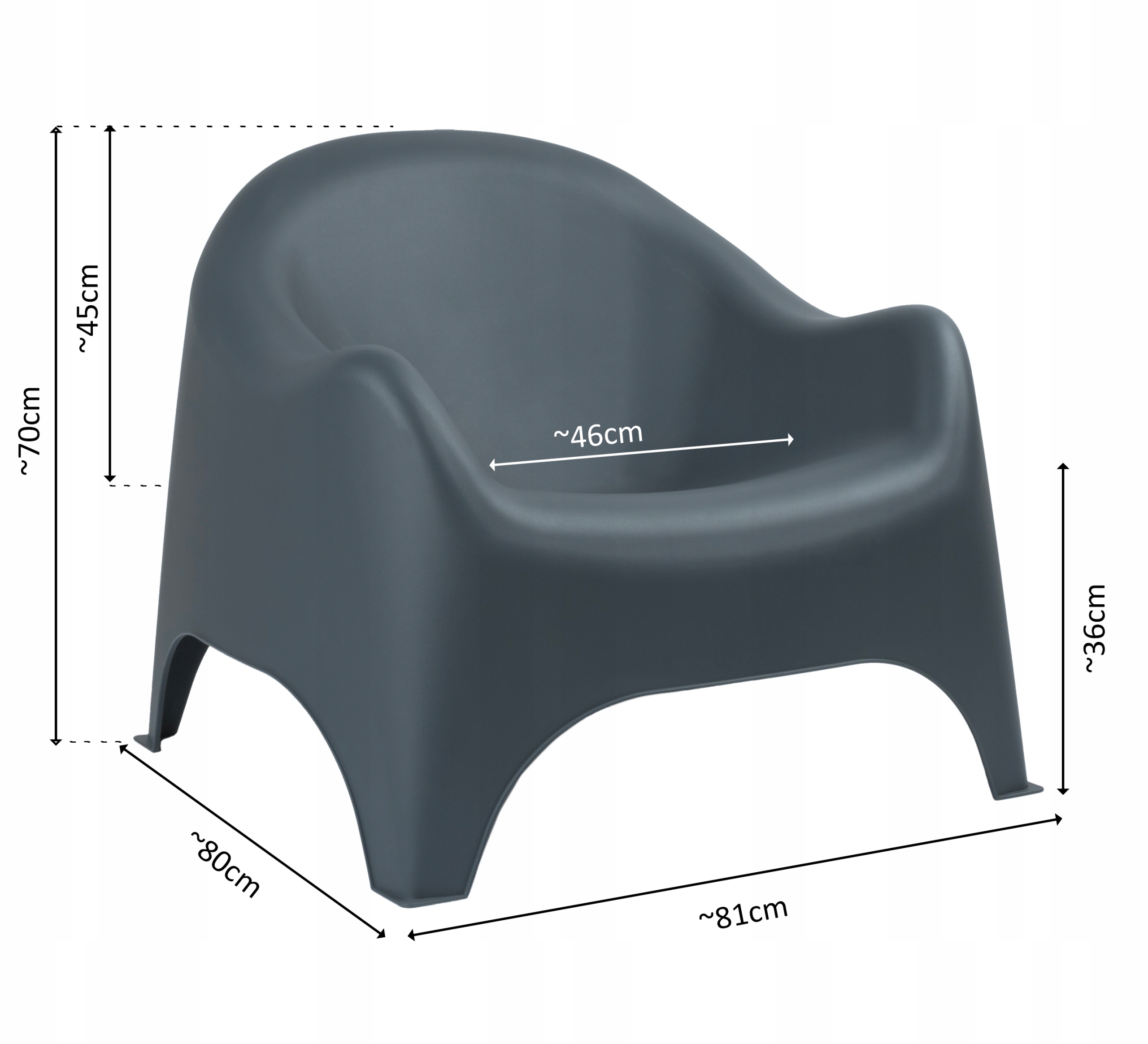 Він виготовлений із міцного пластику, стійкого до погодних умов. Примітка: Однак пам'ятайте - щоб зберегти ідеальний зовнішній вигляд меблів протягом багатьох років, рекомендується захищати їх від надмірного сонячного світла та опадів.