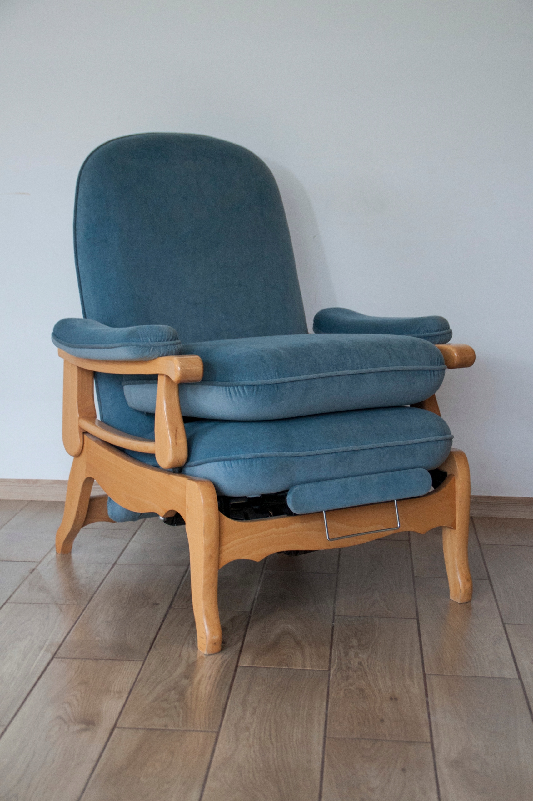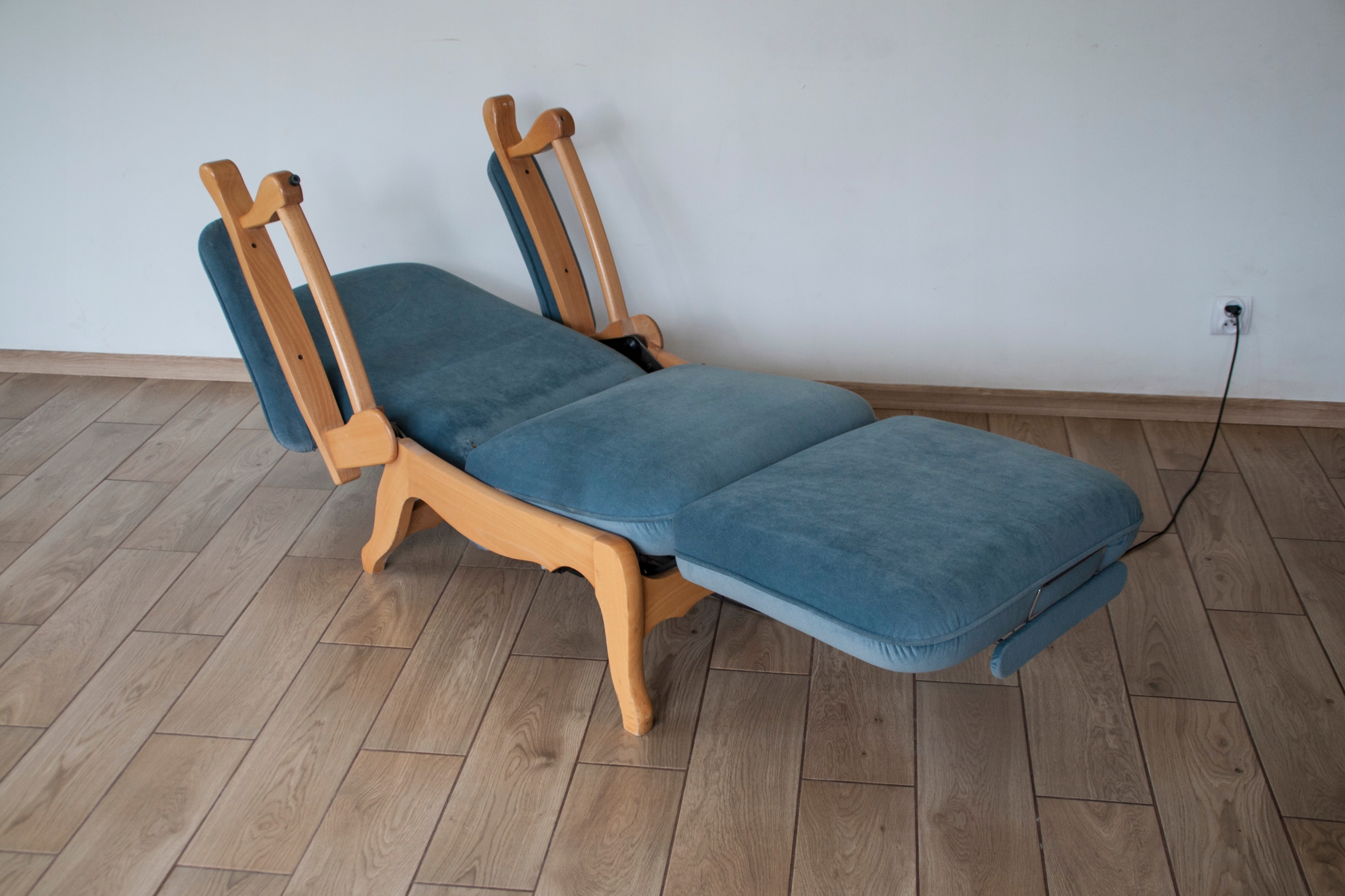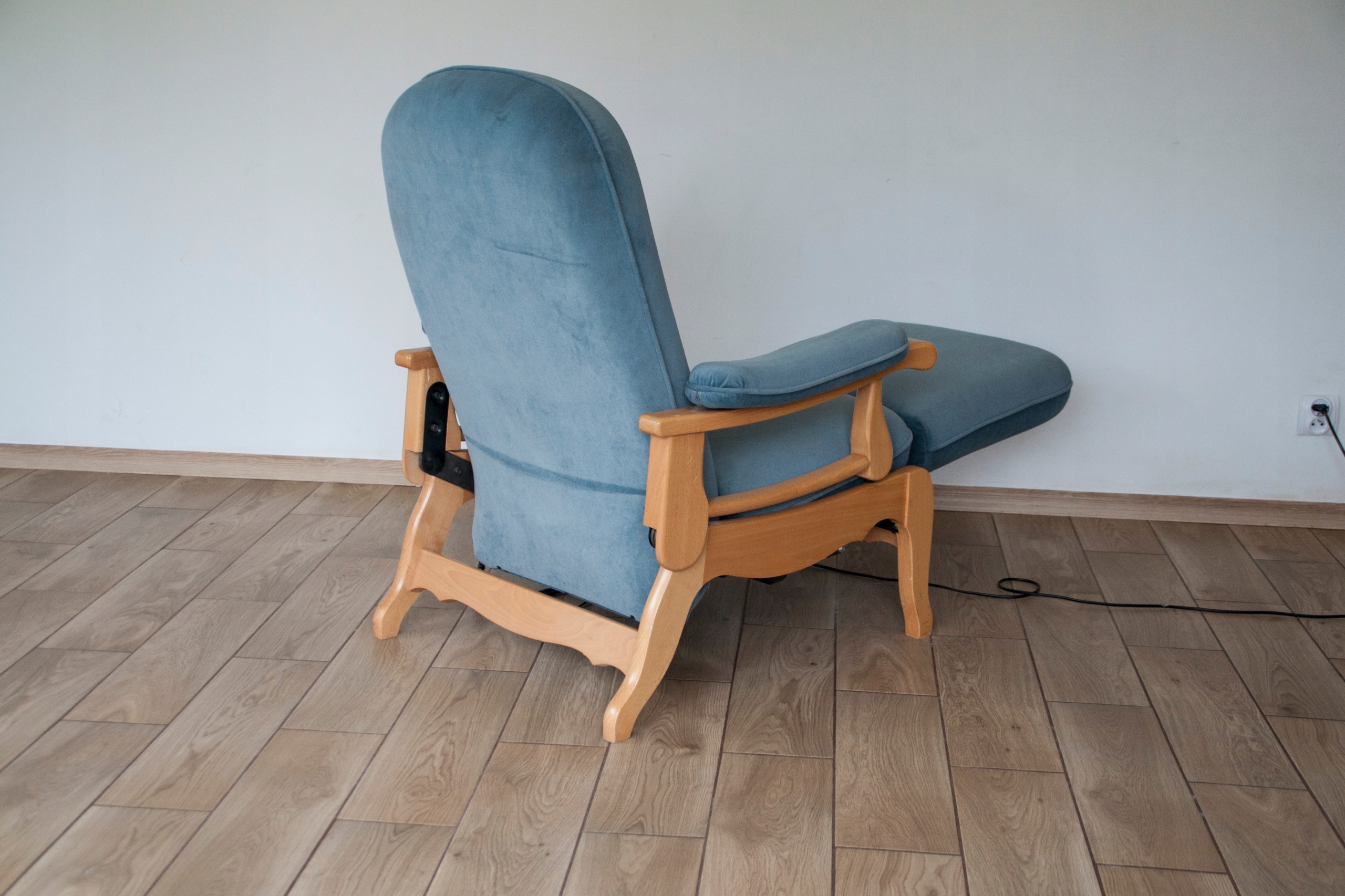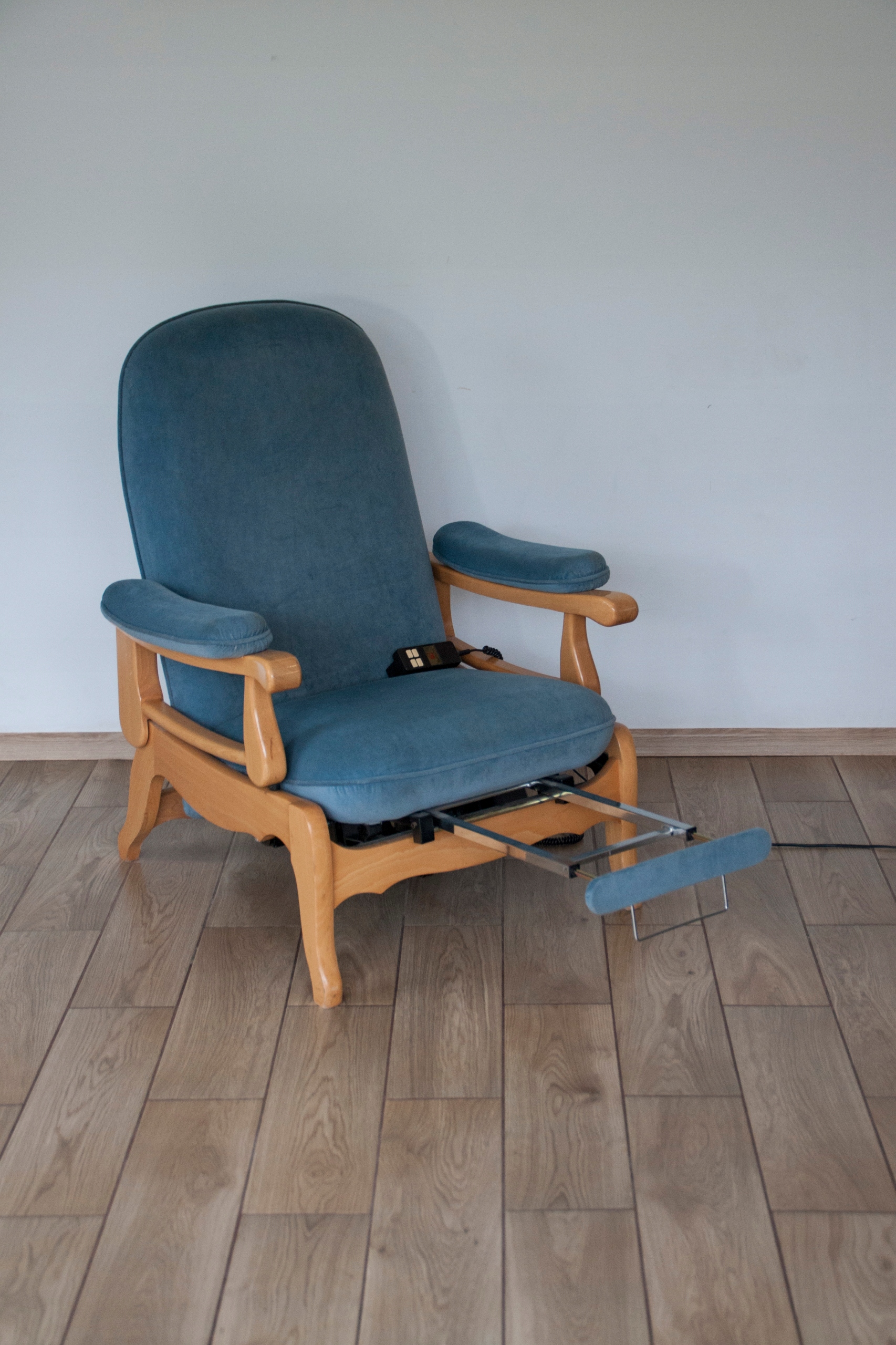 конструкція крісла дуже міцна і масивна, сидіння надзвичайно зручне. Крісло оброблене красивою оббивкою та має природні сліди використання, показані на фотографіях, які не впливають на його використання. Крісло розкладається за допомогою пульта дистанційного керування (можна зупинити в будь-якому положенні), а також має додаткову і дуже корисну функцію підйому підлокітників, що дає багато можливостей для позиціонування та налаштування крісла. Крісло може красиво виглядати в будь-якій кімнаті будинку: вітальні, кабінеті, спальні...