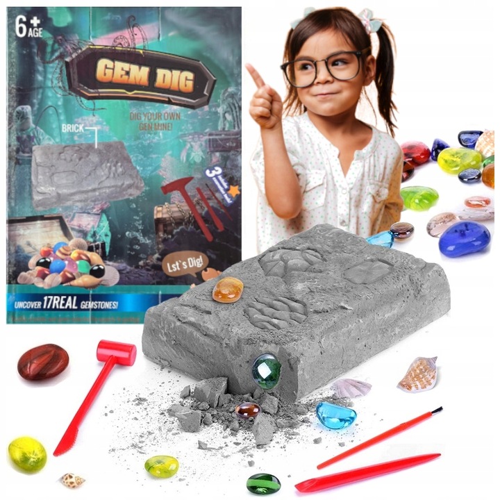 У набір входить блок розміром 17x11x3,5 см, у якому заховані різні діаманти та кристали, які можна копати. Якщо ви хочете видобути скам’янілості, ви повинні використовувати спеціалізовані інструменти, щоб не пошкодити знахідки. Ви повинні бути надзвичайно ніжними, терплячими та точними, щоб відкопати всі скарби - а їх цілих 17! - - поки що розкопують. Мушлі, дорогоцінні камені різнокольорових кольорів — знайдіть їх усе та переконайтеся, наскільки неймовірно цікава робота археолога! Можливо, у майбутньому ваша дитина теж захоче здобути цю цікаву професію? ☺️