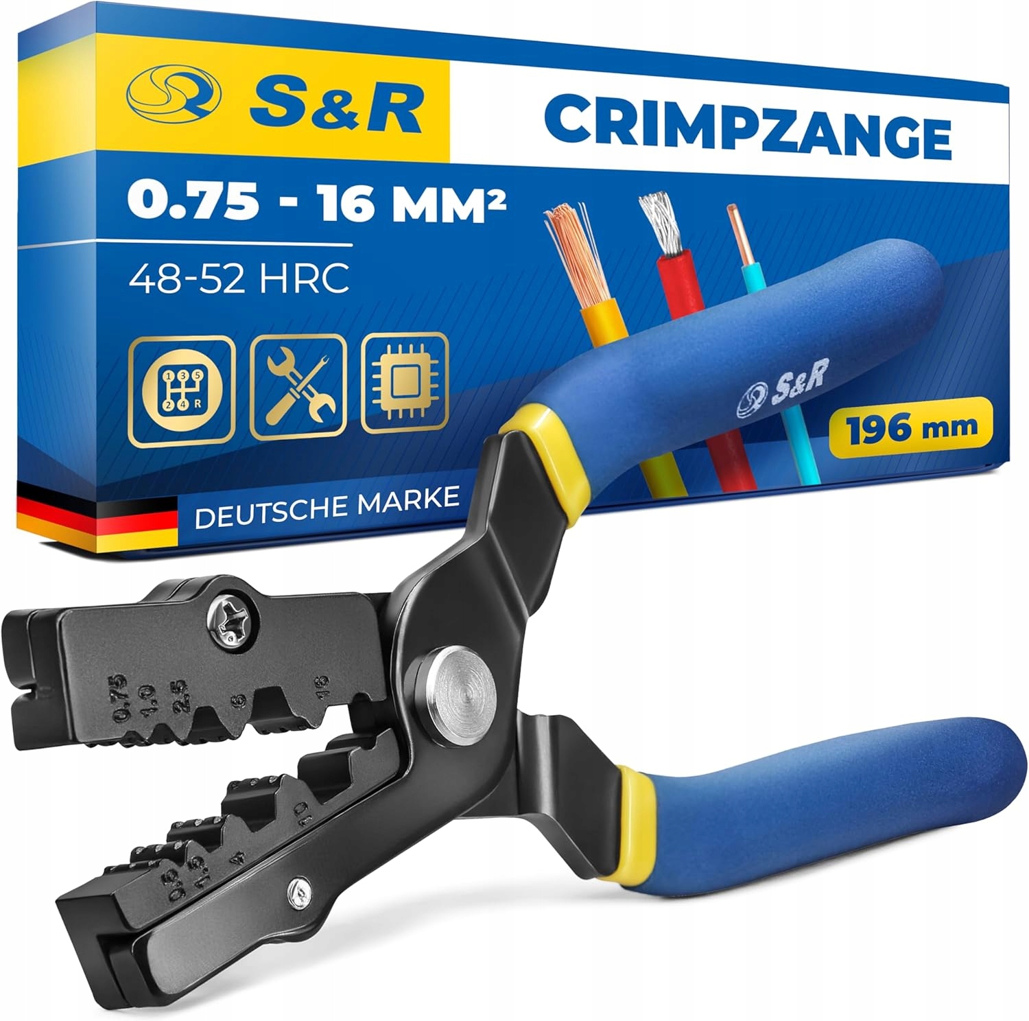 Празькі обтисні плоскогубці для кабельних кабелів 0,75 - 16 мм², 190 мм S&R