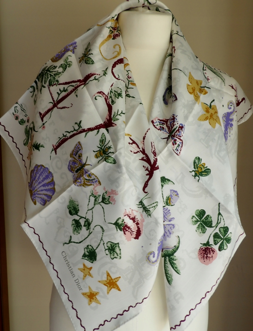 Крістіан Діор Свілл шовк шарфа квітів 90/90