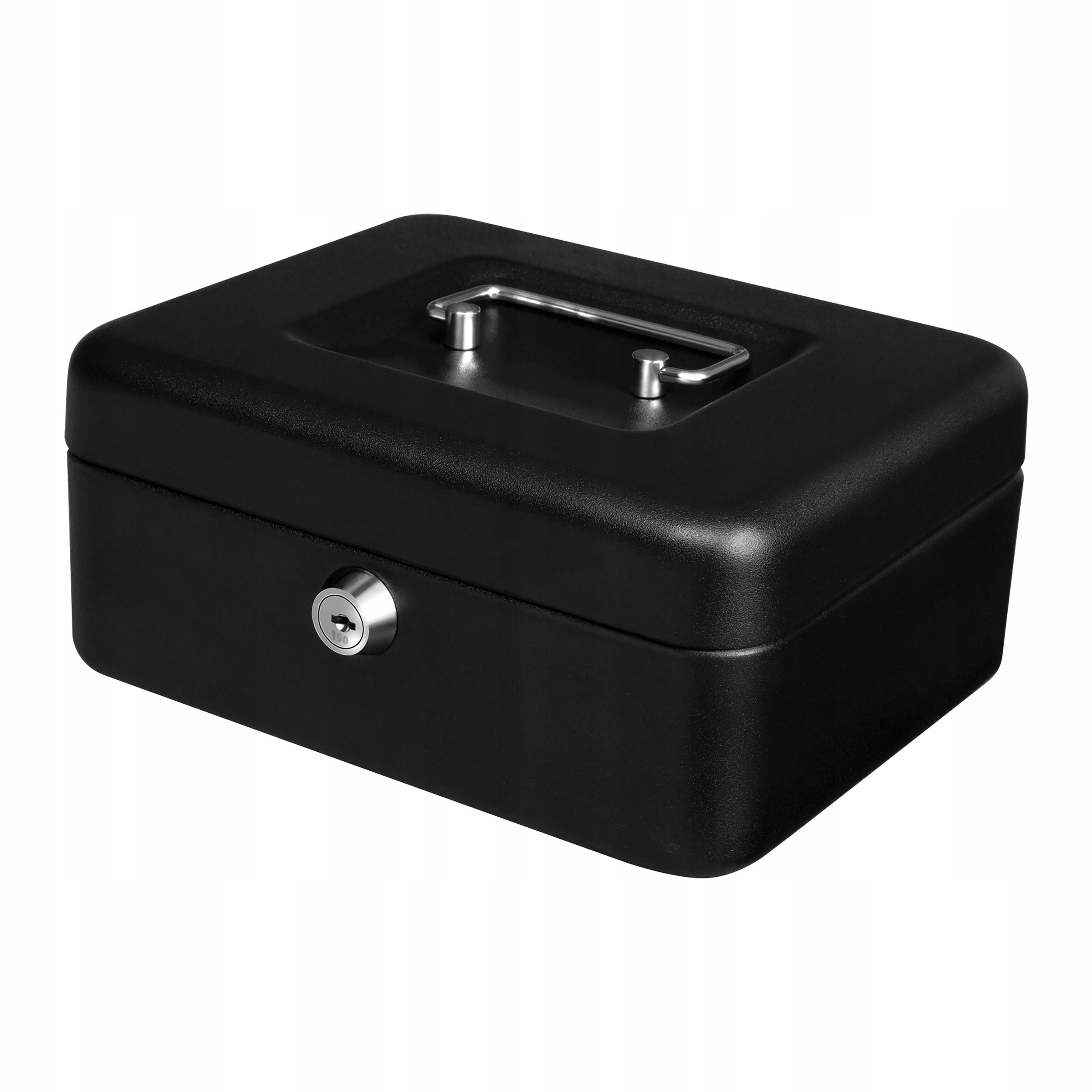 Металева шкатулка із зовнішніми розмірами 90x200x160, виготовлена з пресованої сталевої листа, чорний лакований. У шкатулці є сильний патентний замок, який забезпечує великий захист від доступу до несанкціонованих кас. У кожній шкатулці є 2 індивідуальні клавіші, які відповідають їй лише. Касета має хромовану ручку, встановлену в поглибленні кришки, що дозволяє встановити кілька касет одразу на іншу під час транспорту. Продукт ідеально підходить для зберігання грошей, особистих документів, цінних паперів чи інших дрібних предметів, цінних. Вага касети - 900 г.