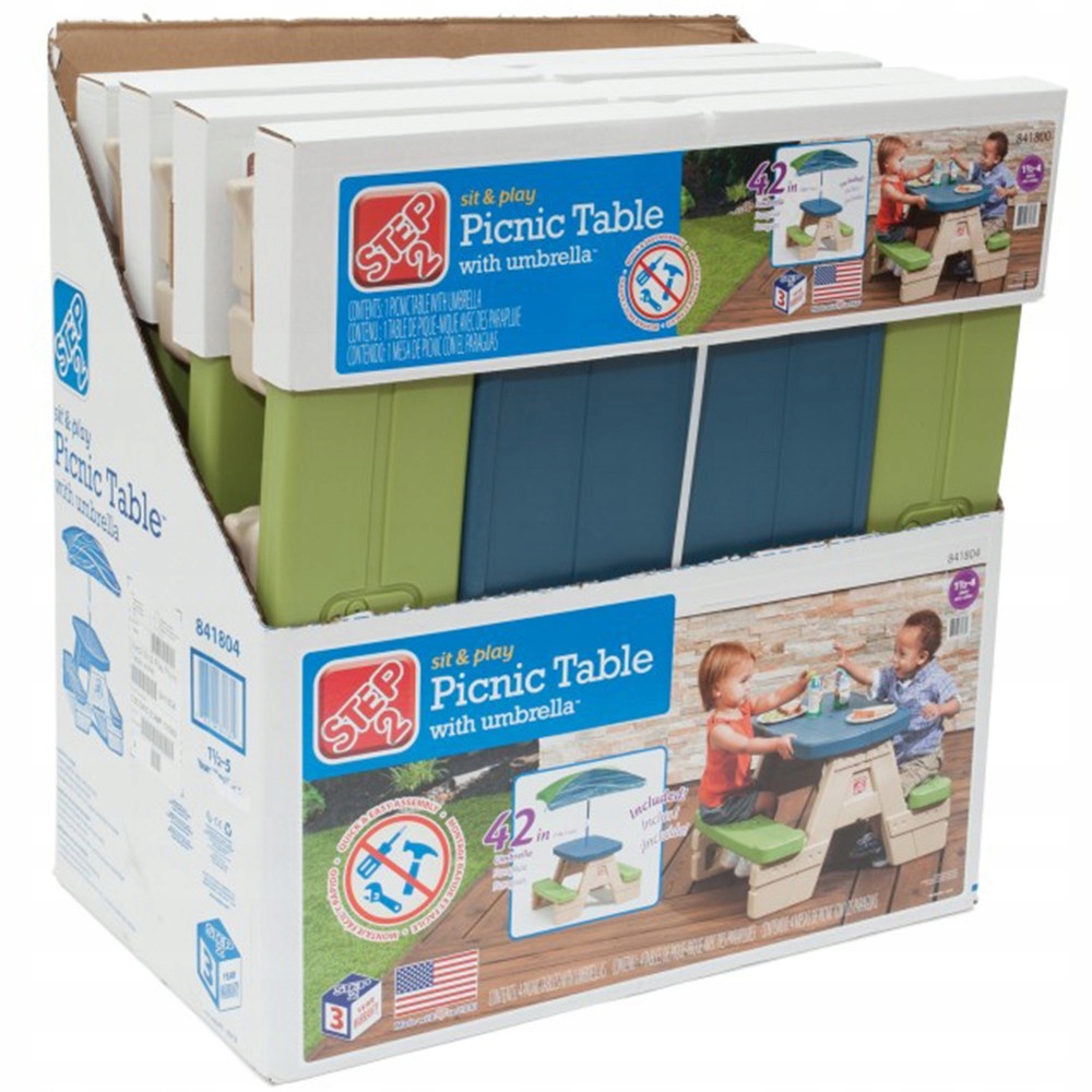 Універсальний Стіл Пікнік для дітей, щоб грати та перекушувати делікатеси від відомого Step2. Малюки та діти дошкільного віку можуть сидіти разом і відпочивати, граючи за власним садовим столиком. Комплектується знімною парасолькою і сидінням для чотирьох дітей. Цей міцний і багатофункціональний столик буде використовуватися дітьми для перекусів, рукоділля, зустрічей з друзями та багато іншого! Стіл ідеально підходить в приміщенні та на вулиці, а головне в тіні від сонця та дощу, завдяки парасольці, що входить до комплекту . Коли час гри закінчиться, стіл легко розбирається без інструментів і складається для легкого зберігання.