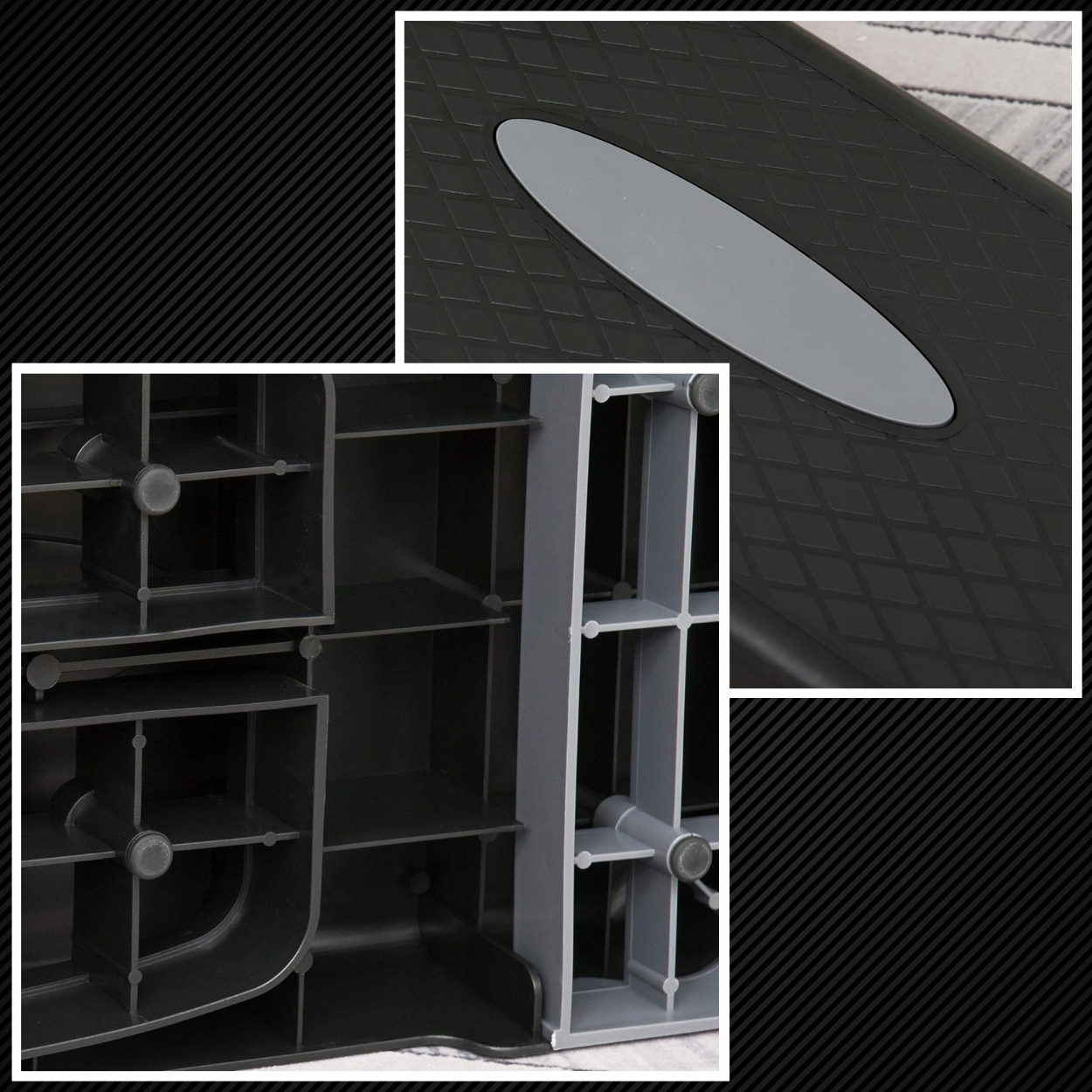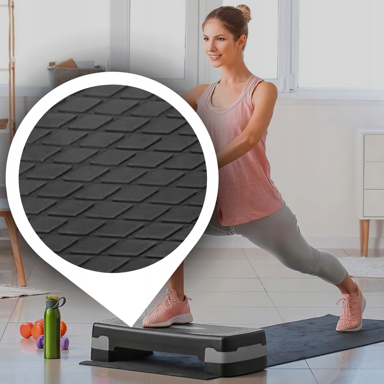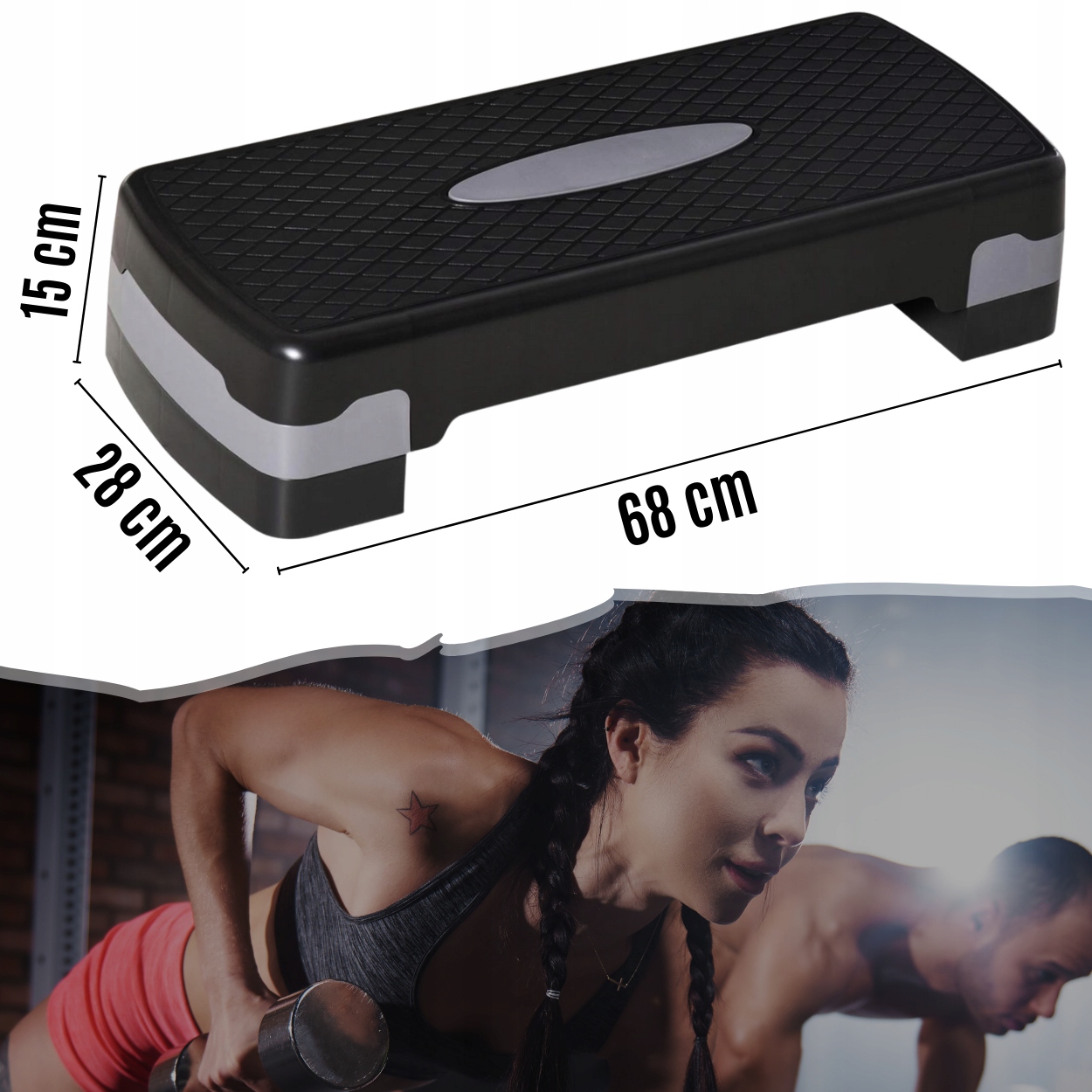 Крок з 3 поступовим регулюванням бренду - ідеальний пристрій для аеробних вправ - зменшення маси тіла, вправи, що зміцнюють м’язи ніг, живота та сідниць. Крок повинен бути обов'язковим положенням Фізіотерапії. Крок виготовлений із світла і дуже міцного пластику. Поверхня, що не є слизом, забезпечує стабільність та безпеку під час тренувань. Гумові ноги запобігають переміщенню пристрою під час динамічних вправ.