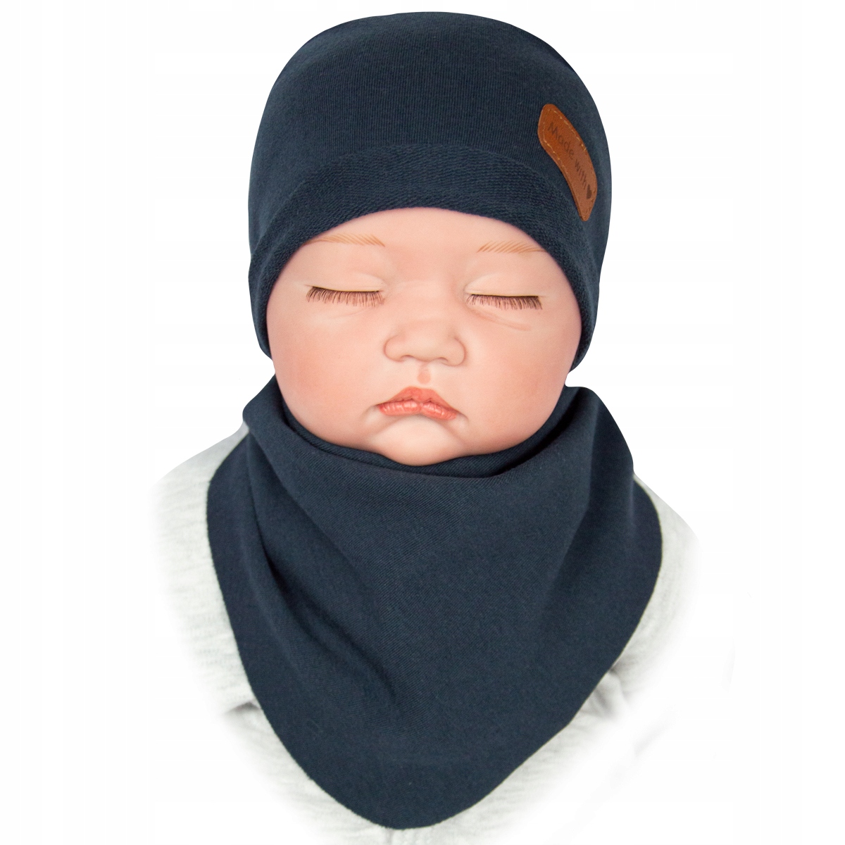 Набір повністю виготовлений з гнучкої толстовки, завдяки якій він проходить добре. Ми вибрали високоякісну трикотаж - товстий і приємний на дотик. Завдяки своїй еластичності капелюх обережно дотримується голови дитини, а хустинка легко пов'язує шию.