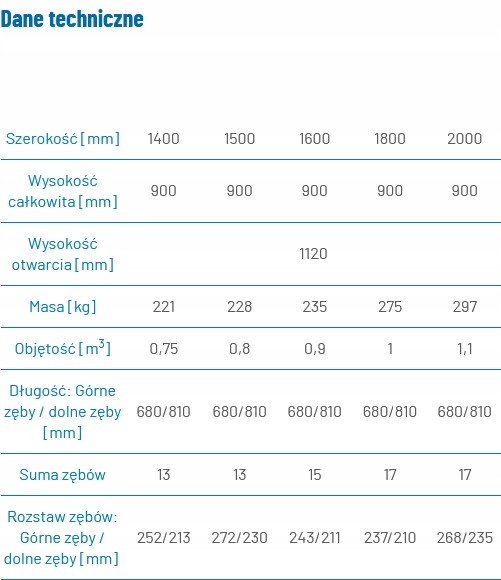 один з найпопулярніших аксесуарів для передніх зарядних пристроїв. Міцна та тверда конструкція забезпечить довге та безпечне використання. Використання високої якості, що має високу потужність циліндрів, задню стінку та дуже міцні зуби, забезпечить адекватне видавлення транспортованого матеріалу та мінімізує втрати, пов'язані із втратою матеріалу. Призначений для транспортування сільськогосподарських продуктів, таких як кукурудза, гній тощо.