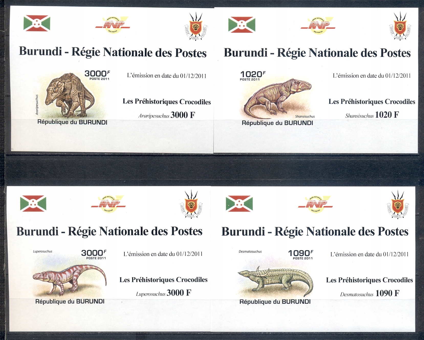 КРОКОДИЛИ. РЕСПУБЛІЯ БУРУНДІ. MNH. 4xBl. Б. 2011 рік