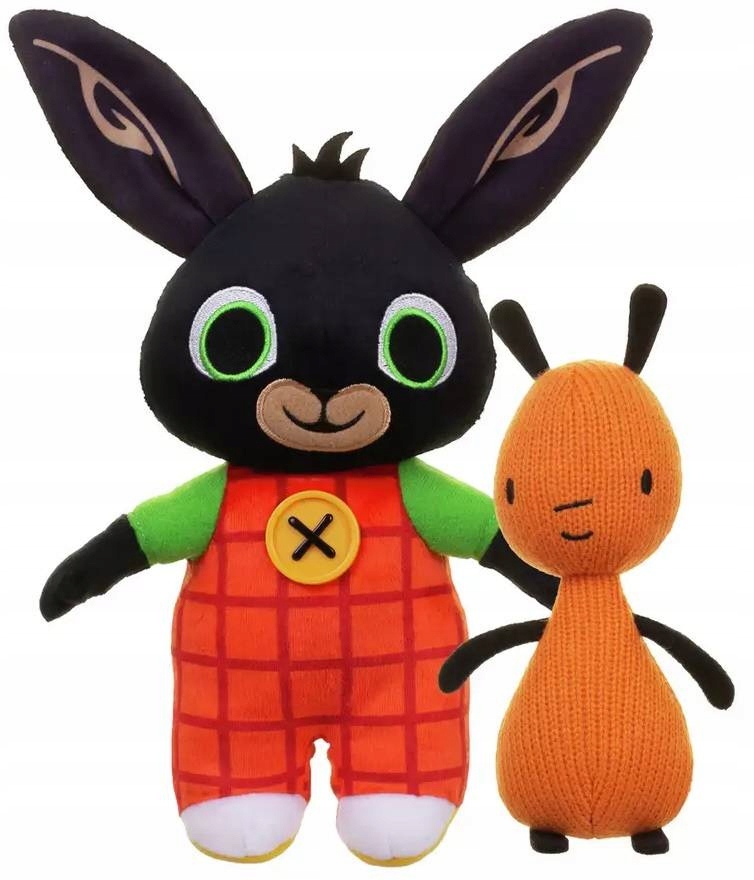 Ці милі та чарівні плюшеві талісмани Бінг і Флоп неодмінно порадують маленьких шанувальників популярного серіалу про пригоди веселого зайчика. Вони виготовлені з надзвичайно м'яких матеріалів, тому ідеально підходять для обіймів! Бінг одягнений у свій знаменитий картатий комбінезон, як у серіалі, а Флоп виготовлений із приємного на дотик трикотажу з вишитими деталями.