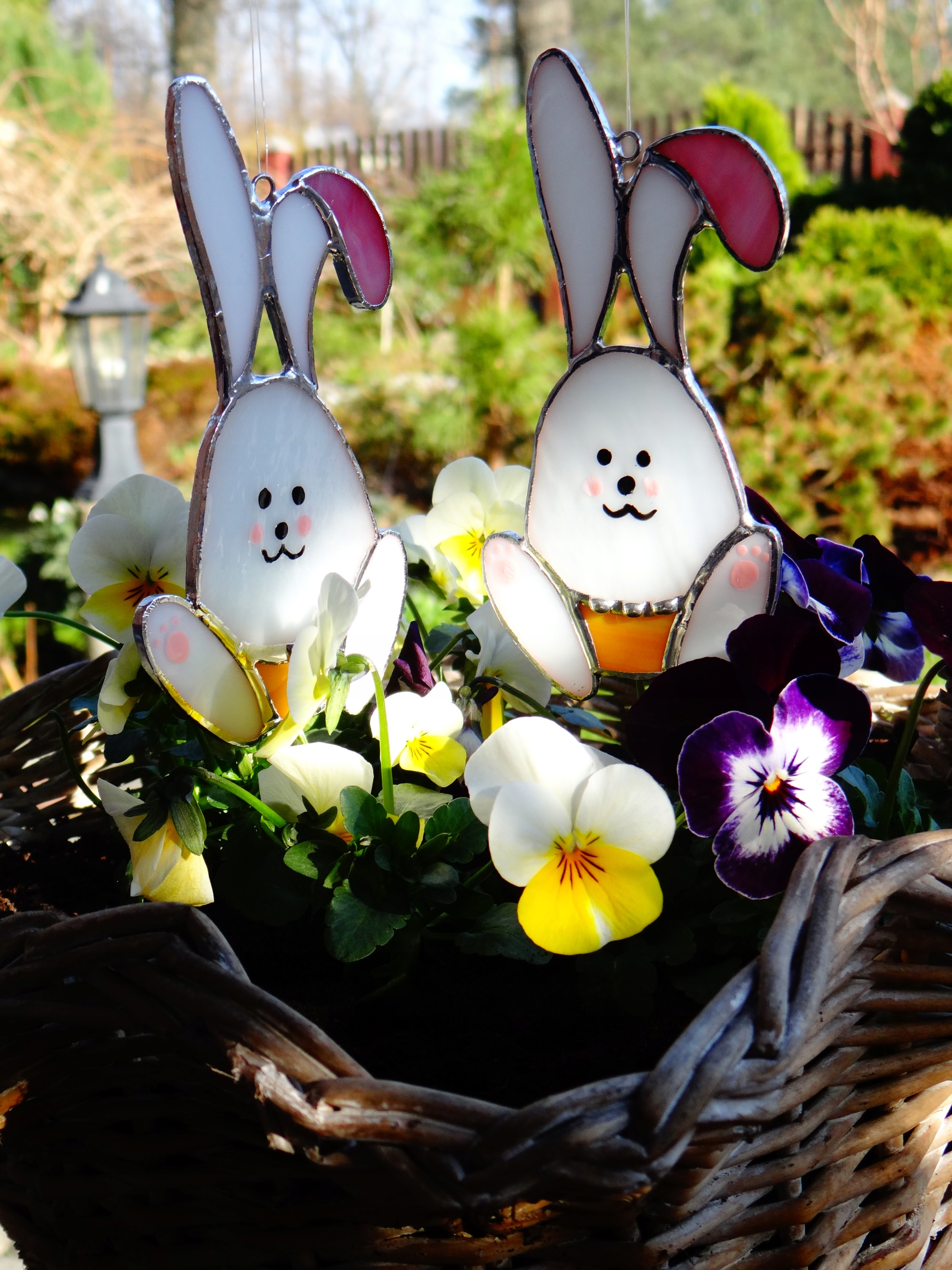 Кролик Великодній Зайчик вітражний кошик підвісного кошика