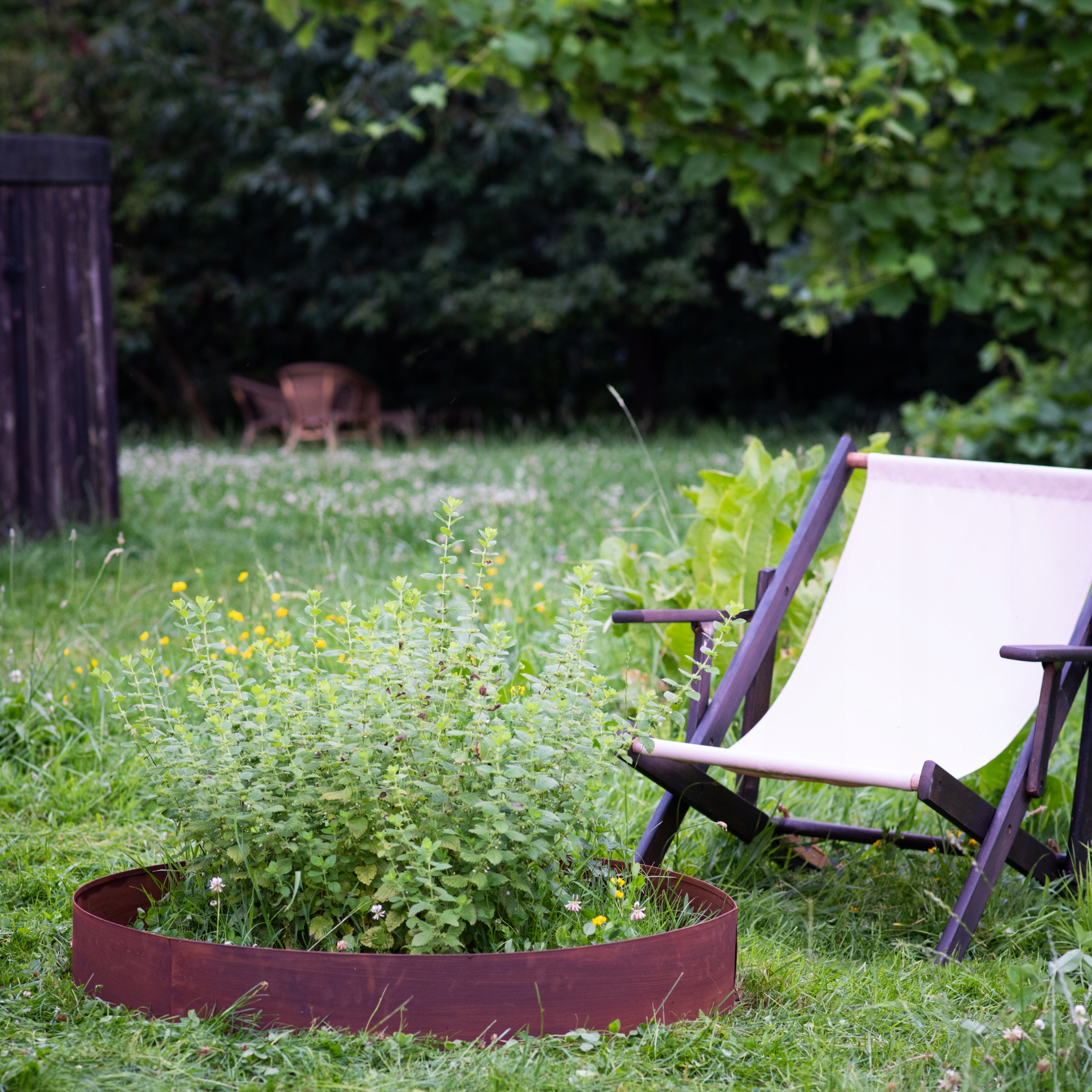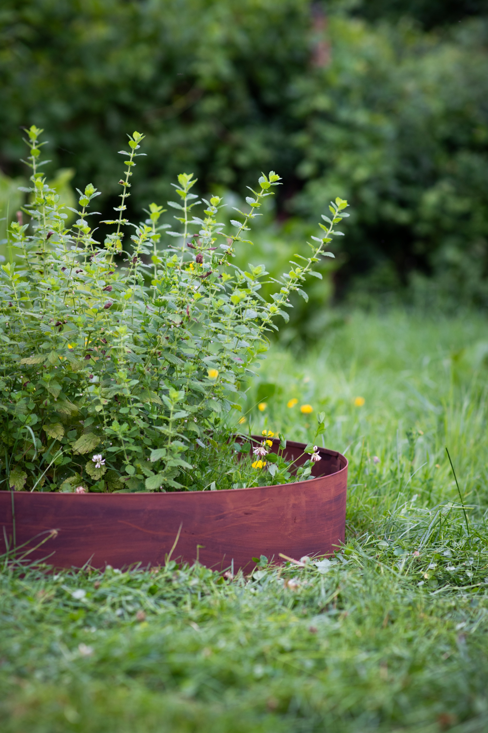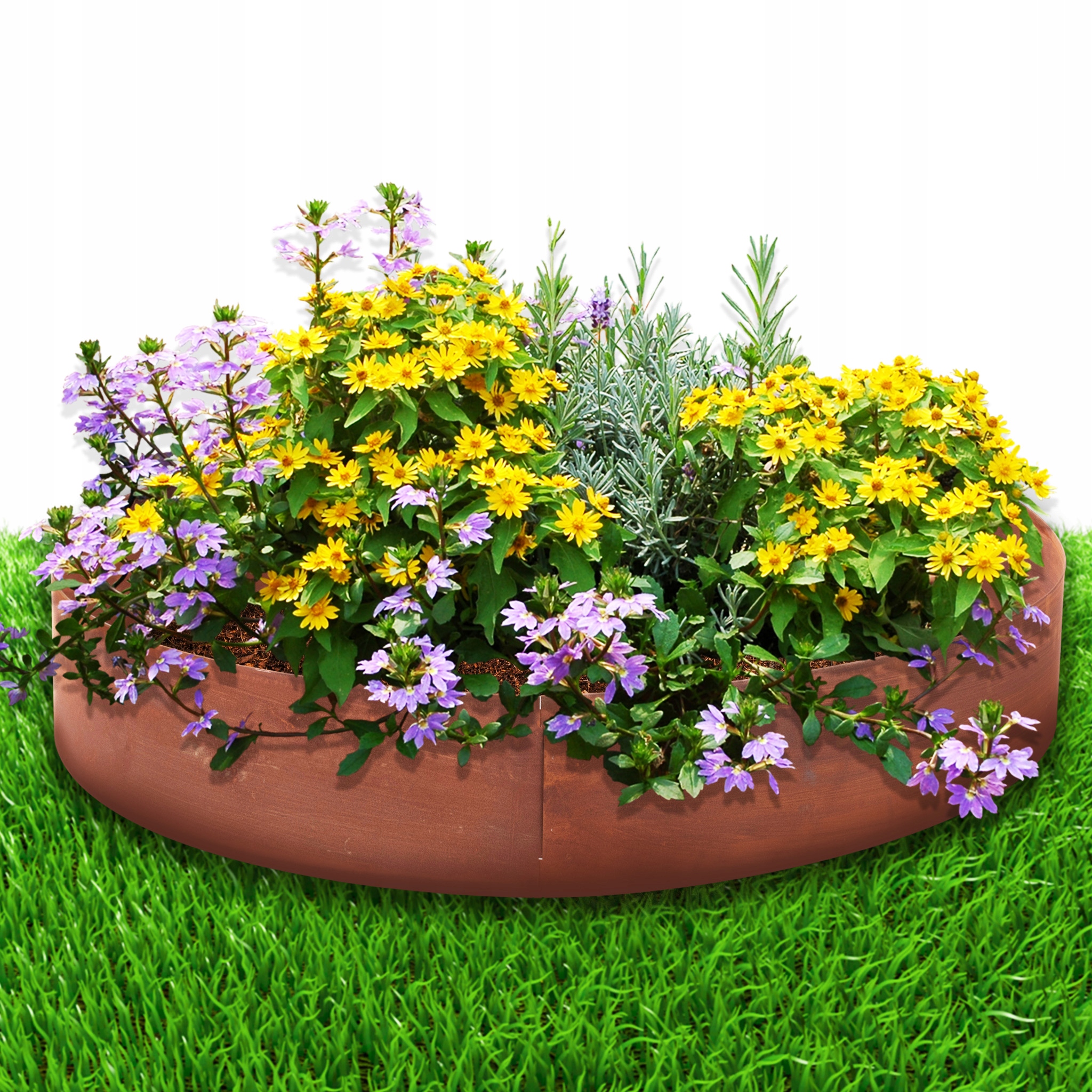 Матеріал: кромка виготовлена з патинованої сталі, яка імітує зовнішній вигляд кортену, додаючи елегантного та сучасного характеру будь-якому саду.