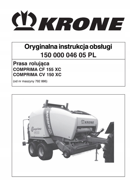 Krone comprima cf 155, cv 150 xc - інструкції з пресу Balota для balotes pl