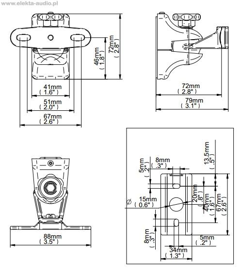 Регульовані вертикально вгору/вниз 20° та горизонтально ліворуч/праворуч 180°3 системи кріплення: один отвір, два отвори, замкова щілина