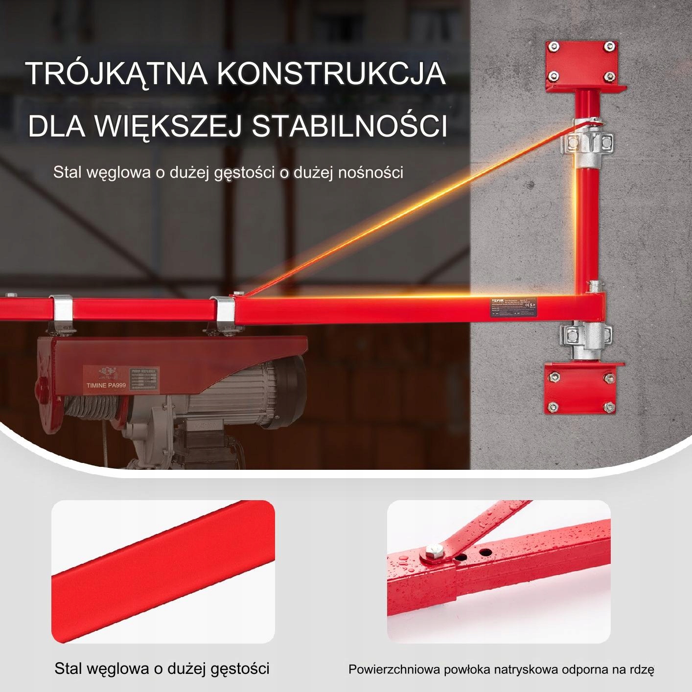 Поєднуючи трикутну конструкцію з технологією посилення, ця стріла зводить до мінімуму хитання завдяки товстій сталевій панелі. Засувки забезпечують безпечне з'єднання між компонентами. Це ідеальний вибір для важких завдань, що гарантує спокій і надійність.