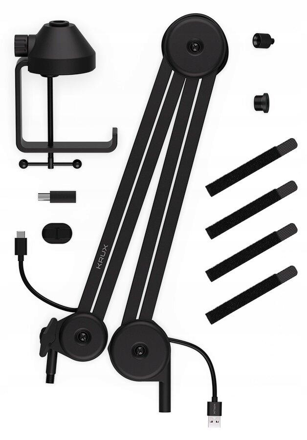У Krux Arm 200S кабель проходить через центр конструкції, тому ви бачите лише його кінці. Це рішення зробить вашу установку естетичною та професійною, поступово наближаючись до досконалості. У набір також входить перехідник USB Type C – USB Type B. Krux Arm 200S може похвалитися горизонтальним діапазоном до 100 см і вертикальним діапазоном до 71 см. Комбінація цих чисел означає, що незалежно від обладнання, яке ви прикріплюєте до руки, маневрування ним у просторі столу є швидким, зручним і безпроблемним.