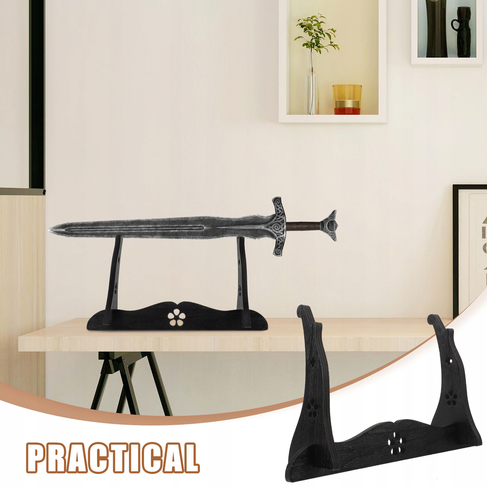 ✅ Конструкція настільної підставки стає красивішою після встановлення, надає вам новий вигляд і красу для демонстрації вашого меча.