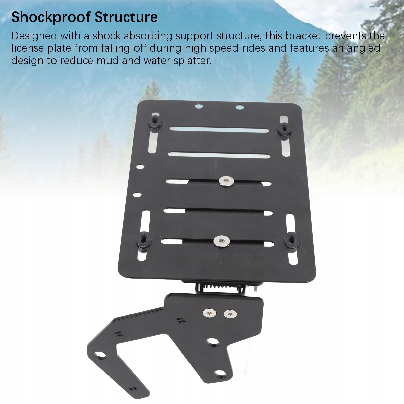 4. Ударостійка конструкція: розроблений із ударостійкою опорною конструкцією, цей кронштейн запобігає падінню номерного знака під час їзди на високій швидкості та має встановлену структуру, щоб зменшити розбризкування бота та води.