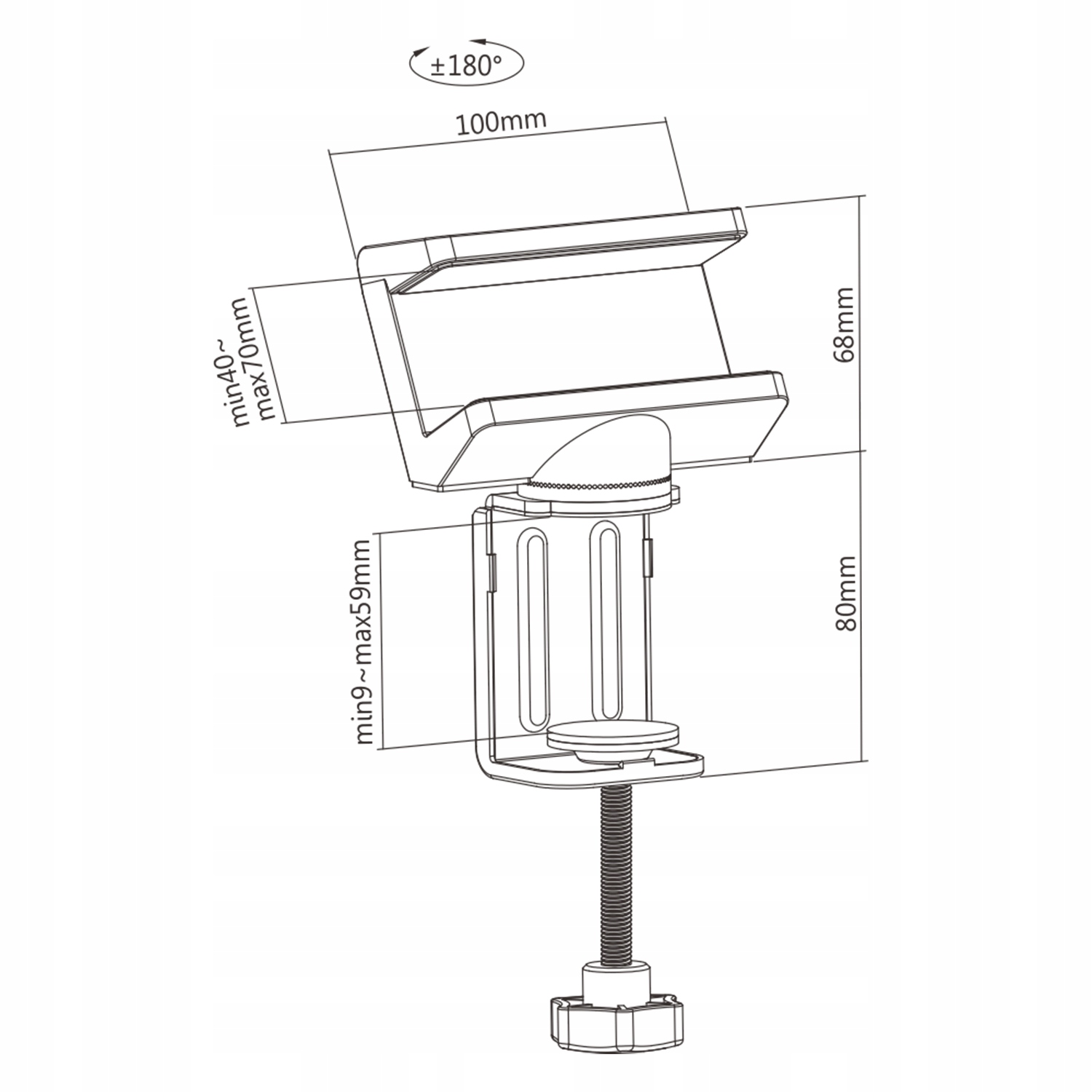 Можна міцно прикріпити до більшості стільниць, столів тощо. Тримач прикріплюється гвинтом. Подовжувач утримується дуже міцною пружинною ручкою. Увага: не вставляйте пальці чи інші частини тіла в ручку!