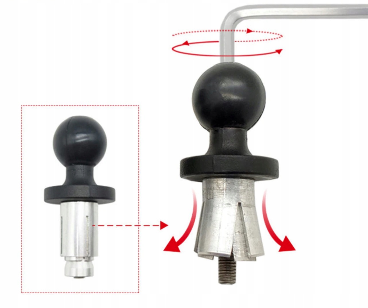 Головка має діаметр 25 мм, що означає, що він сумісний із більшістю доступних на ринку кріплень для телефонів, камер тощо