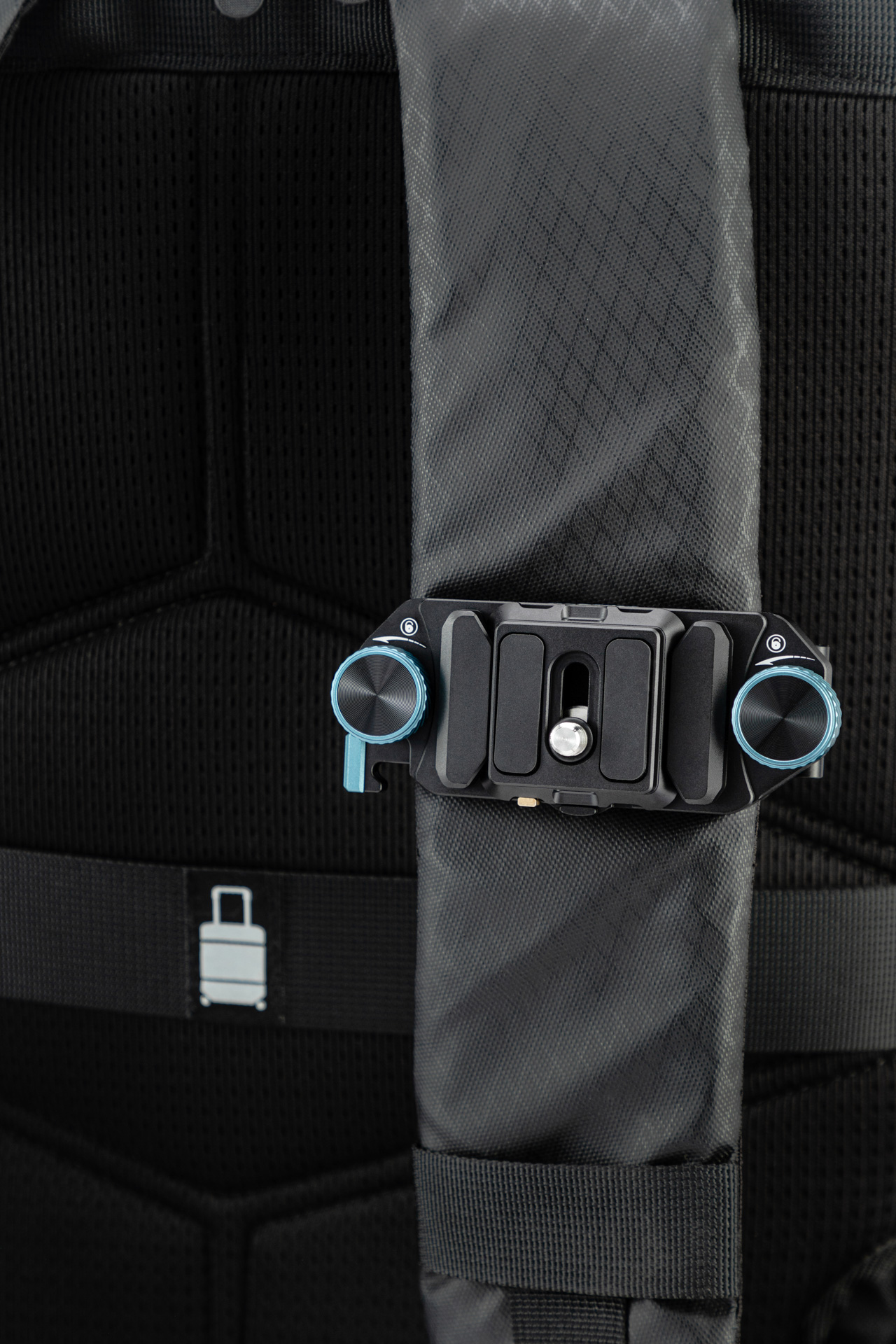 - кріплення за допомогою пластини швидкого кріплення для кріплення камери на лямках рюкзака або стегновому поясі