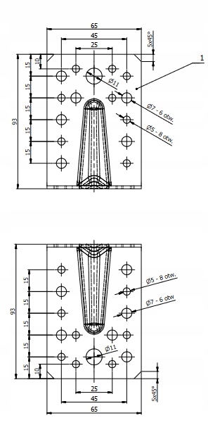 - кількість отворів - 16 отворів ø5мм, 12 отворів ø7мм, 2 отвори ø11мм li> ul>