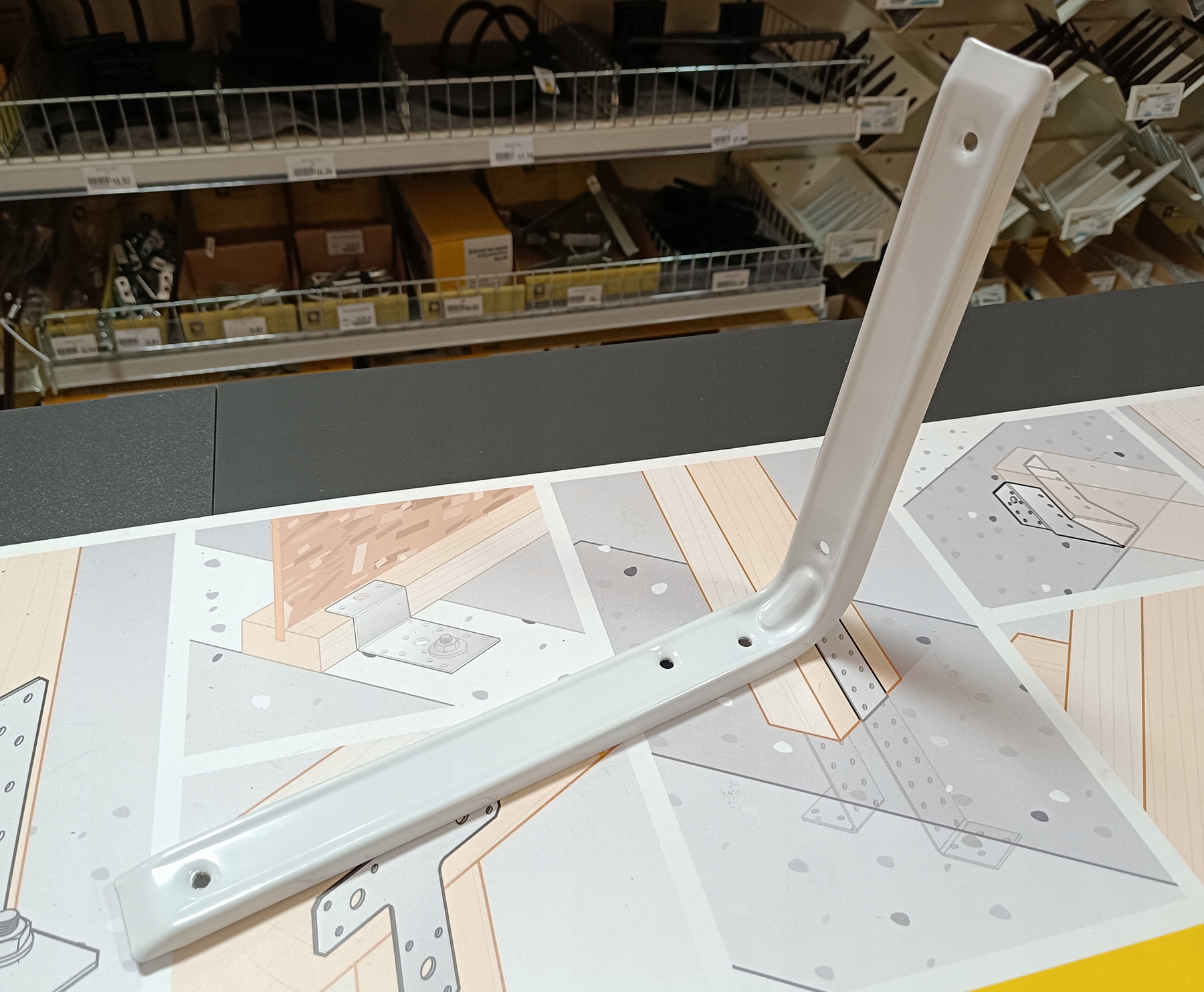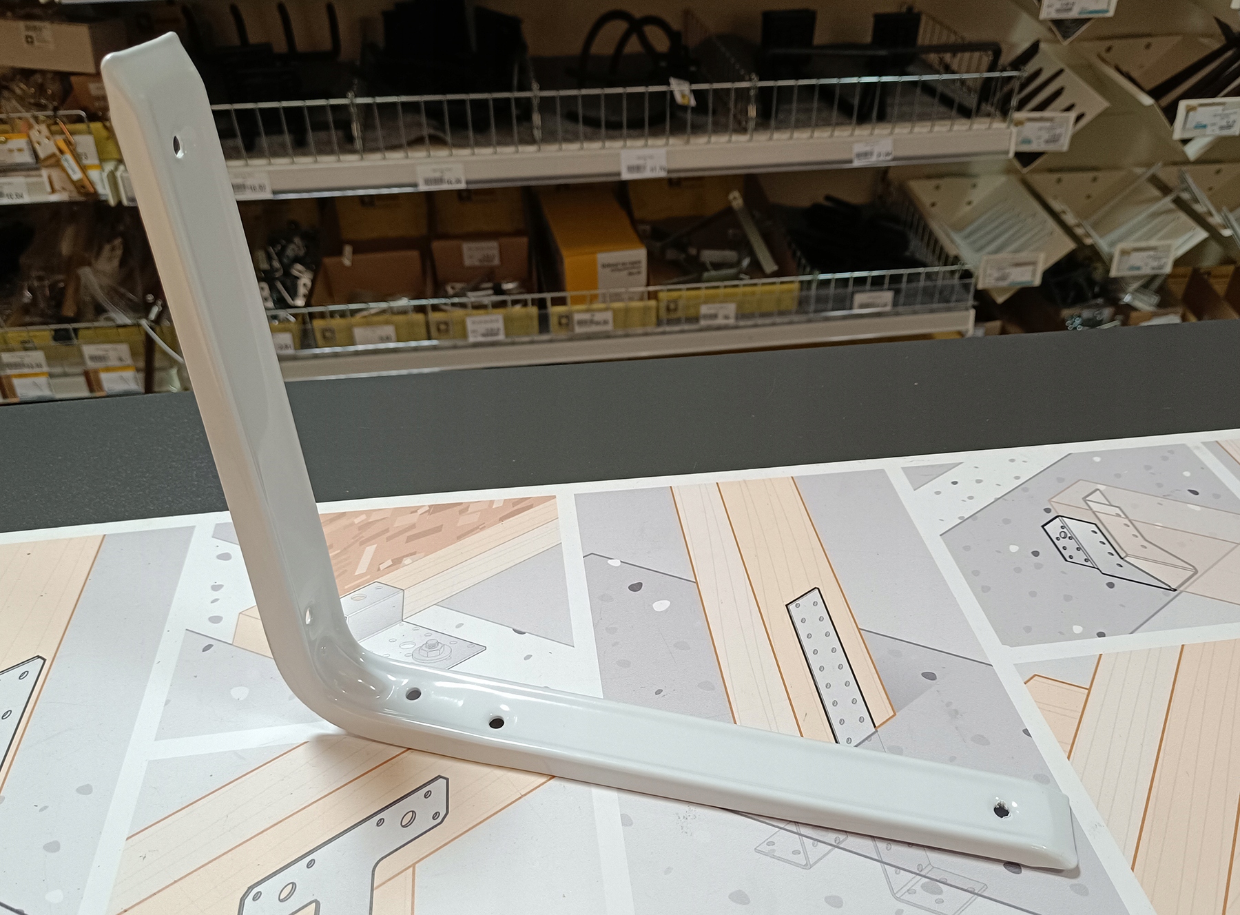 Кронштейн сталевий, армований. Ідеально підходить для полиць у гаражі, коморі, а також для студії чи навіть мінімалістичної кухні.
