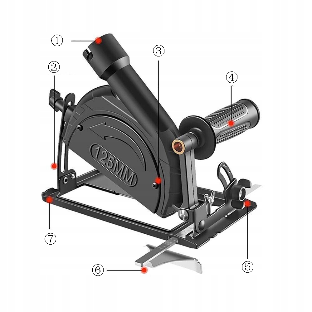 - ⚙️Має збільшений захисний кожух для запобігання розкиданню деревної стружки. Підходить для кутових шліфувальних машин 100~125 і може бути оснащений пильним диском діаметром 125 мм.