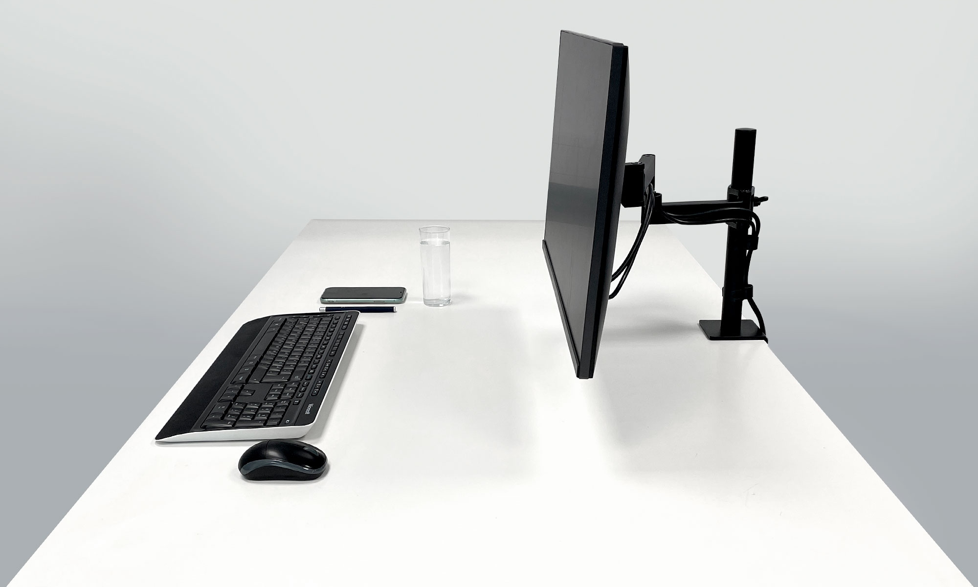 З X1 заплутані кабелі навколо моніторів залишилися в минулому. Кабелі можна просто носити паралельно руці та підвішувати в кабельних каналах. Таким чином вони зникають із видимої області та забезпечують охайний загальний вигляд.