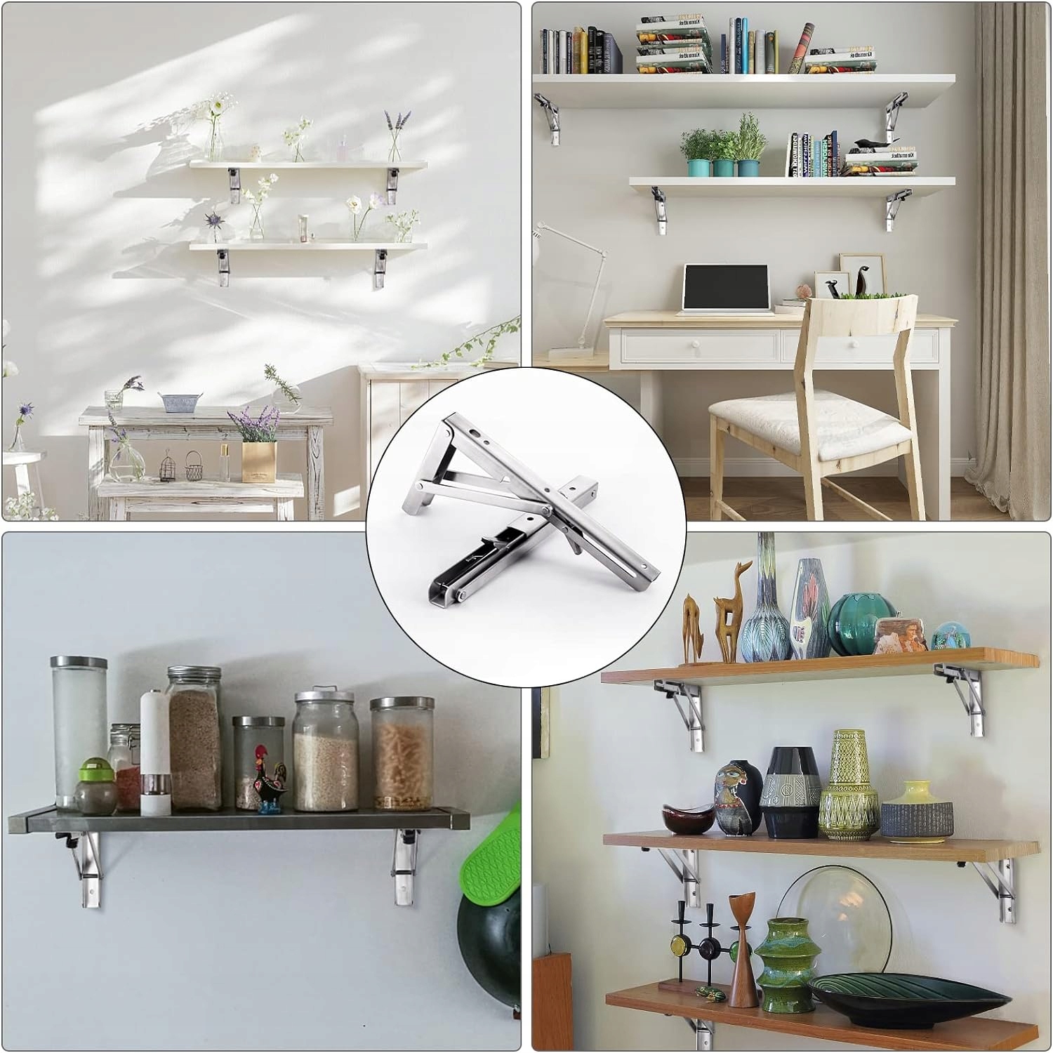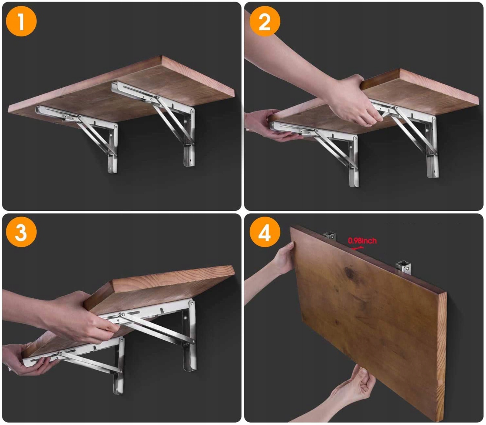 ★ Цей складний кронштейн ідеально підходить для багатьох робіт, пов’язаних з DIY вдома. За допомогою цього кронштейна ви можете розширити стіл майстерні в магазинах, майстернях, човнах, кемпінгових причепах, дворах, кемпінгових причепах, кімнатах, кухнях, балконах, ванних кімнат тощо. Вони також можуть бути використані для книжкових полиць, кухонних полиць та виставкових стендів.