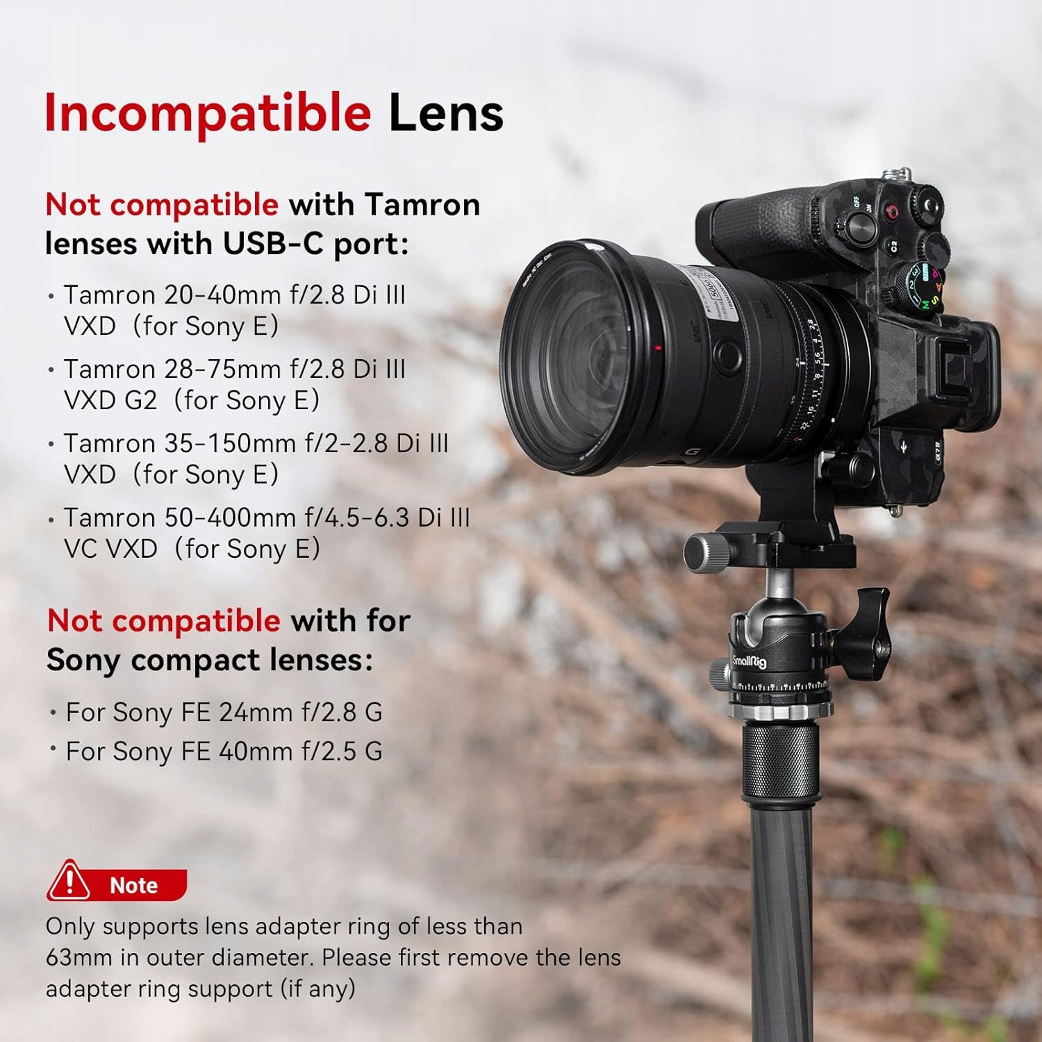 - Підтримується лише перехідне кільце для об’єктива із зовнішнім діаметром менше 63 мм