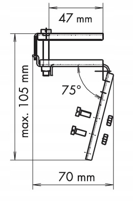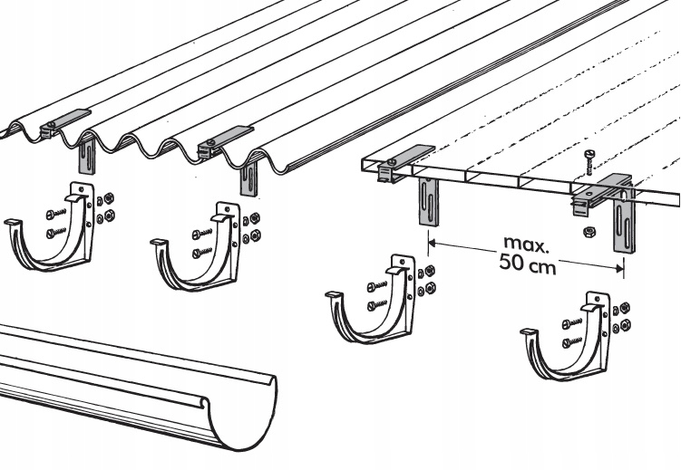 Кронштейн для кріплення переднього гака водостоку 75 мм безпосередньо на покрівлі без необхідності виготовлення передньої дошки. Використовується для покрівлі з трапецієподібного листового металу, профнастилу, суцільного або стільникового полікарбонату.