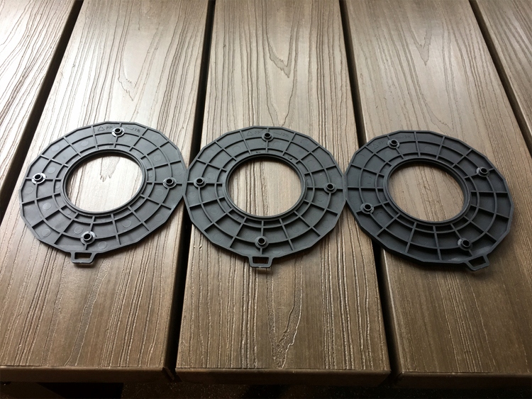 Для кронштейнів терас доступні спеціальні вирівнювальні диски з армованого поліпропілену. Використовується як під опорами балок, так і під опорами для керамічної плитки.