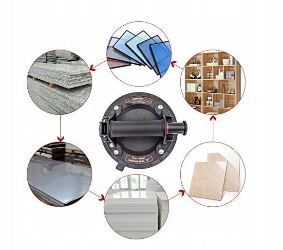 Це високоякісна 8-дюймова присоска, вантажопідйомність 200 кг. Чудова практичність і довговічність. Край глибокого ущільнення, міцне ущільнення, відсутність витоку. Потовщення вентиляційного клапана може ефективно захистити корпус диска. Широке застосування, можна використовувати для перенесення скла, плитки, каменю та інших предметів.