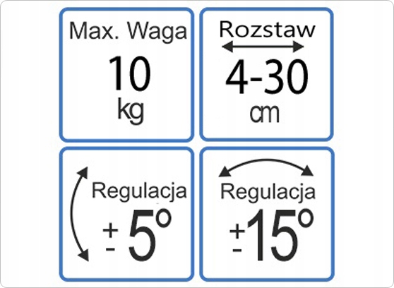 - Допустима відстань між монтажними отворами: 4 - 31 см