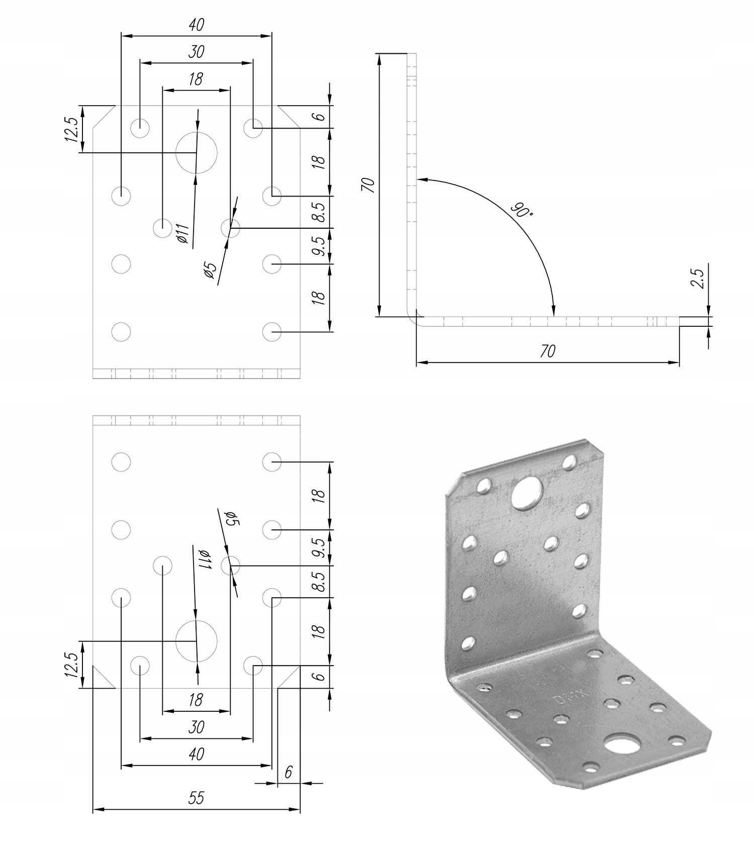 Кутники виготовлені з листової оцинкованої сталі товщиною 2,5 мм.